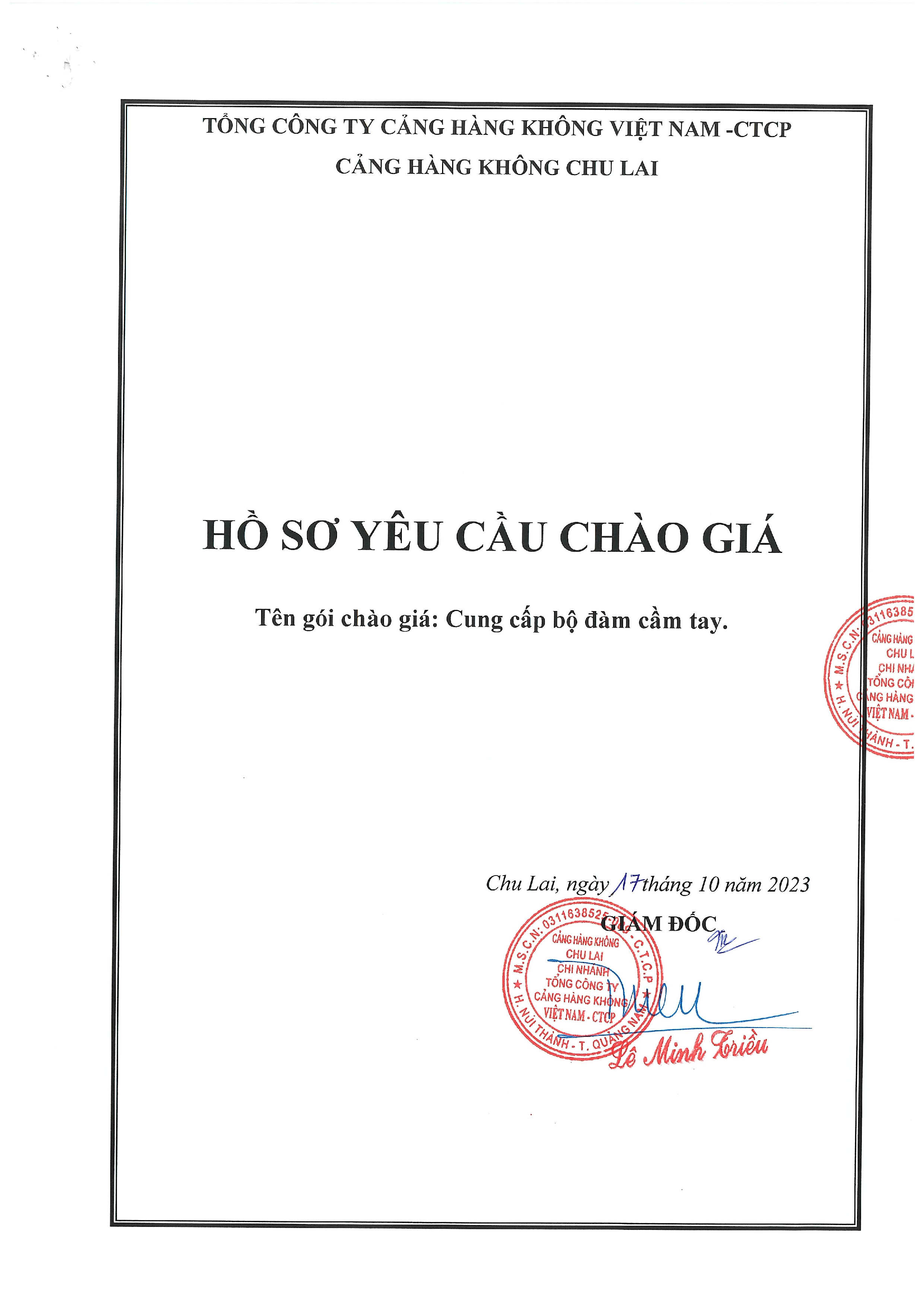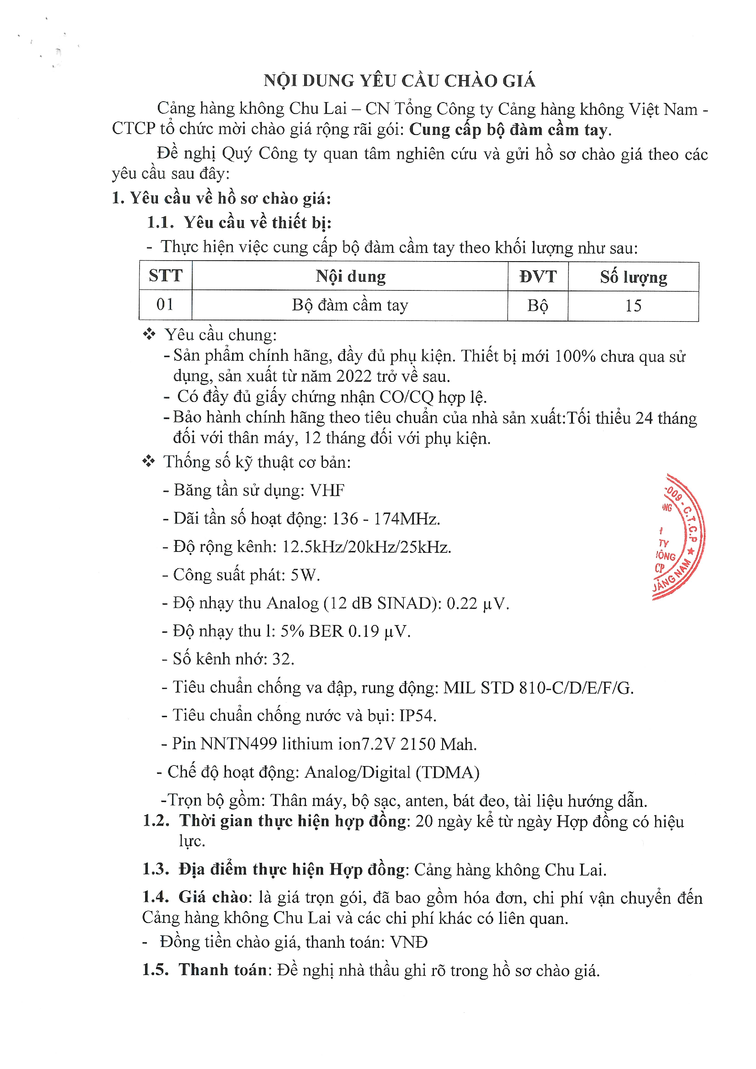 Cảng hàng không Chu Lai - Thông báo mời chào giá: Cung cấp bộ đàm cầm tay.
