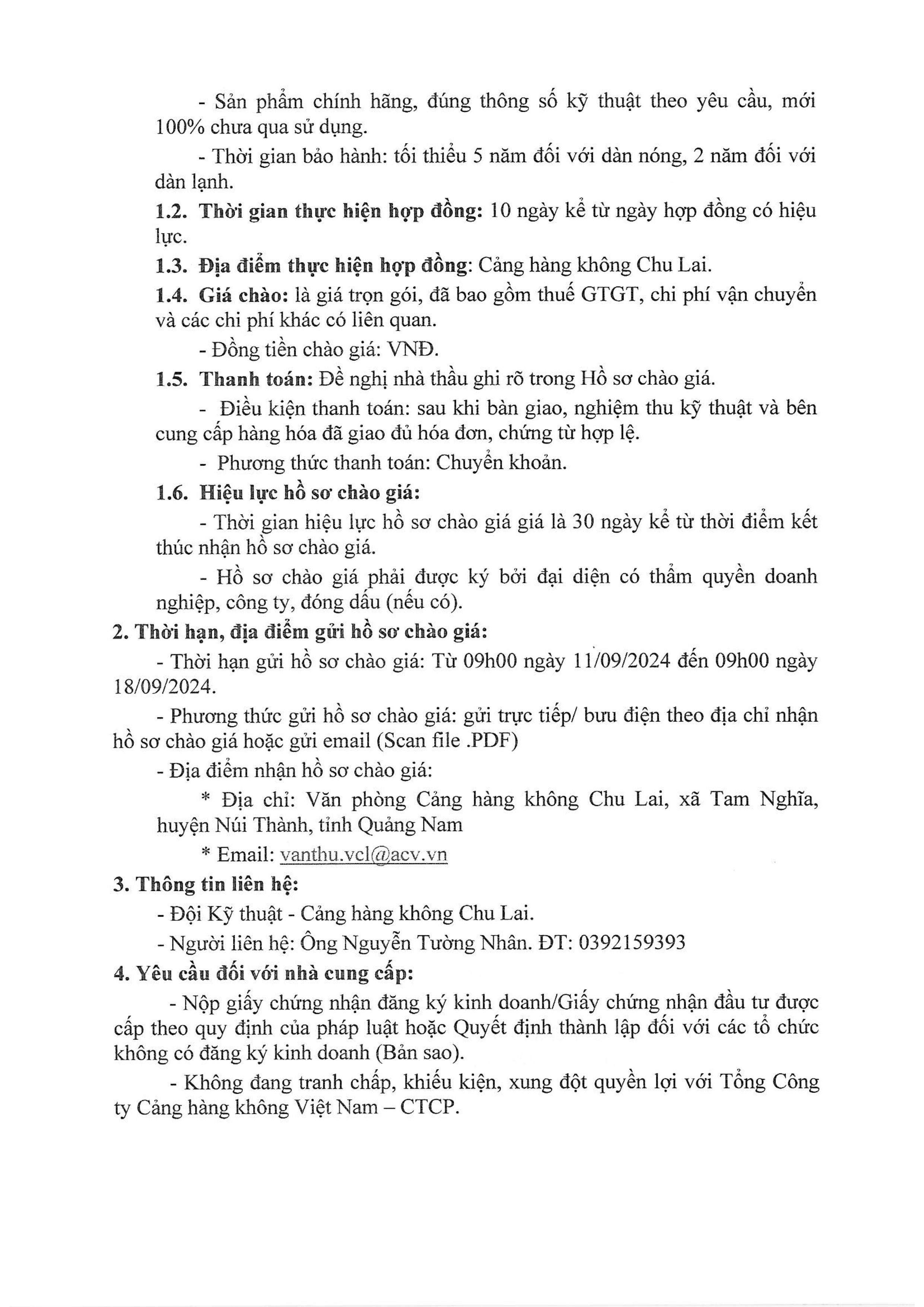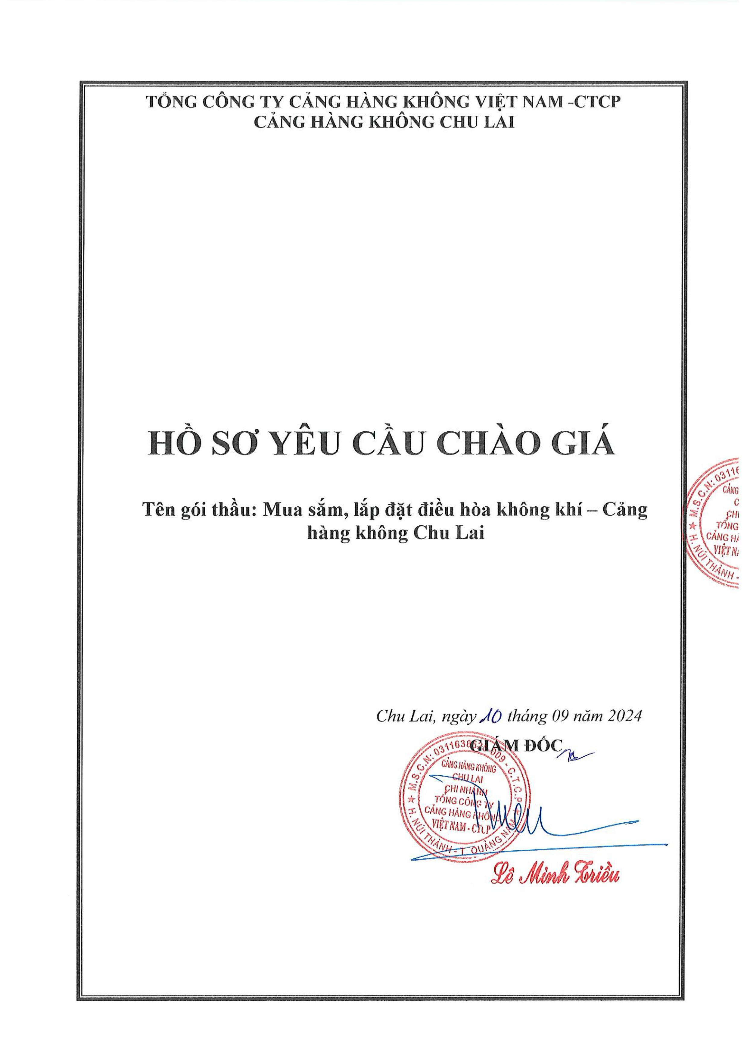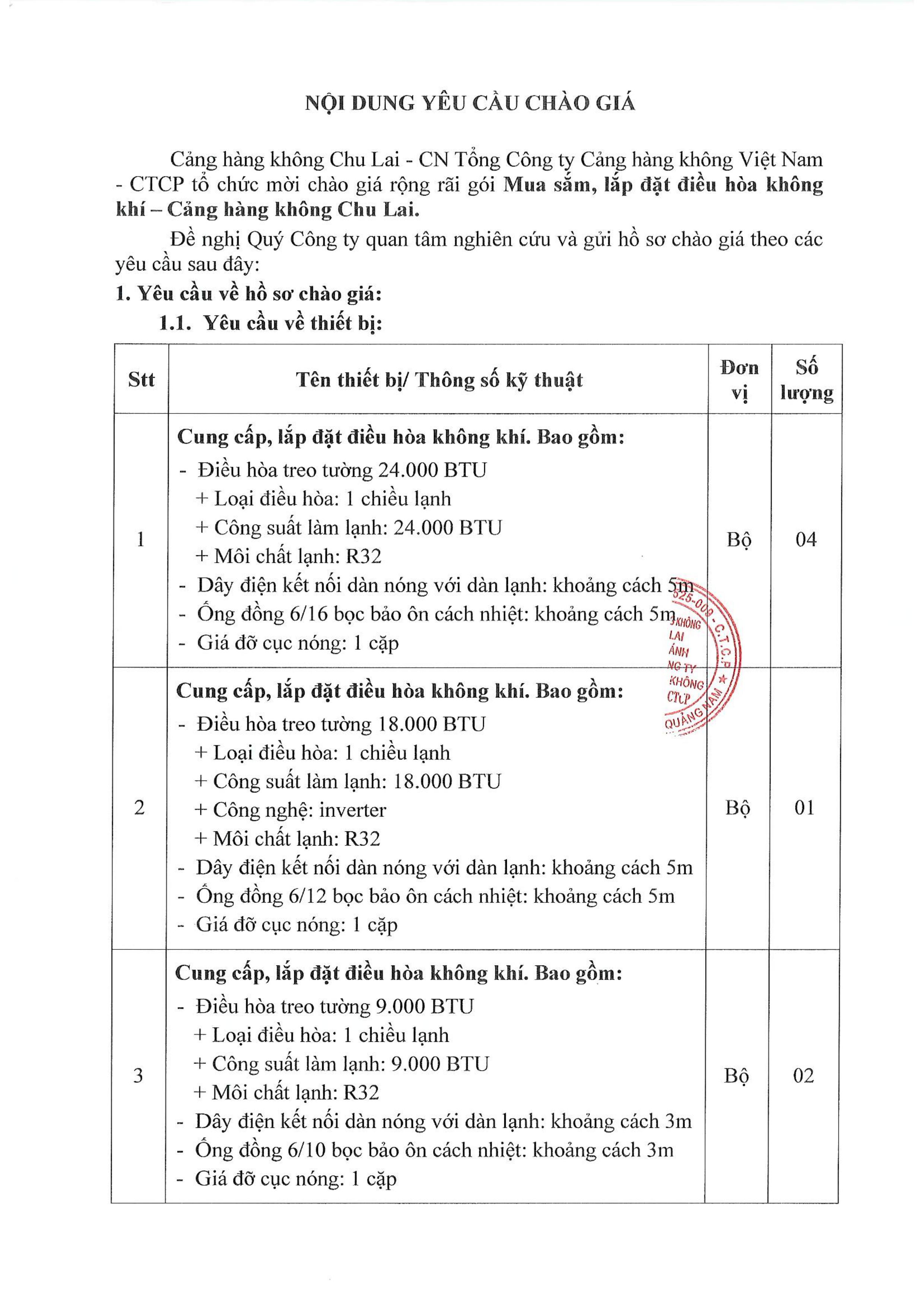 Cảng hàng không Chu Lai thông báo Mời chào giá gói: Mua sắm, lắp đặt điều hòa không khí - Cảng hàng không Chu Lai