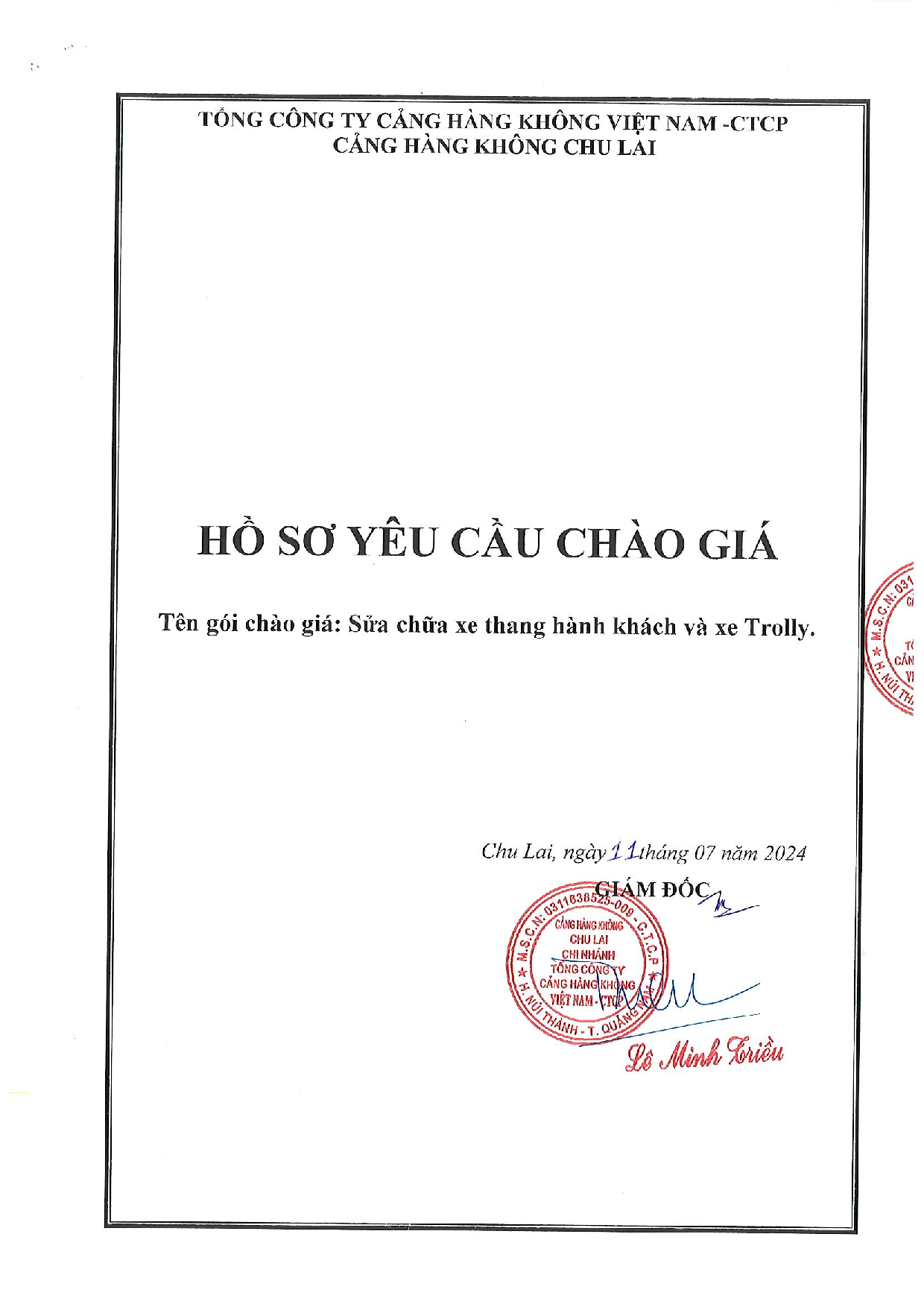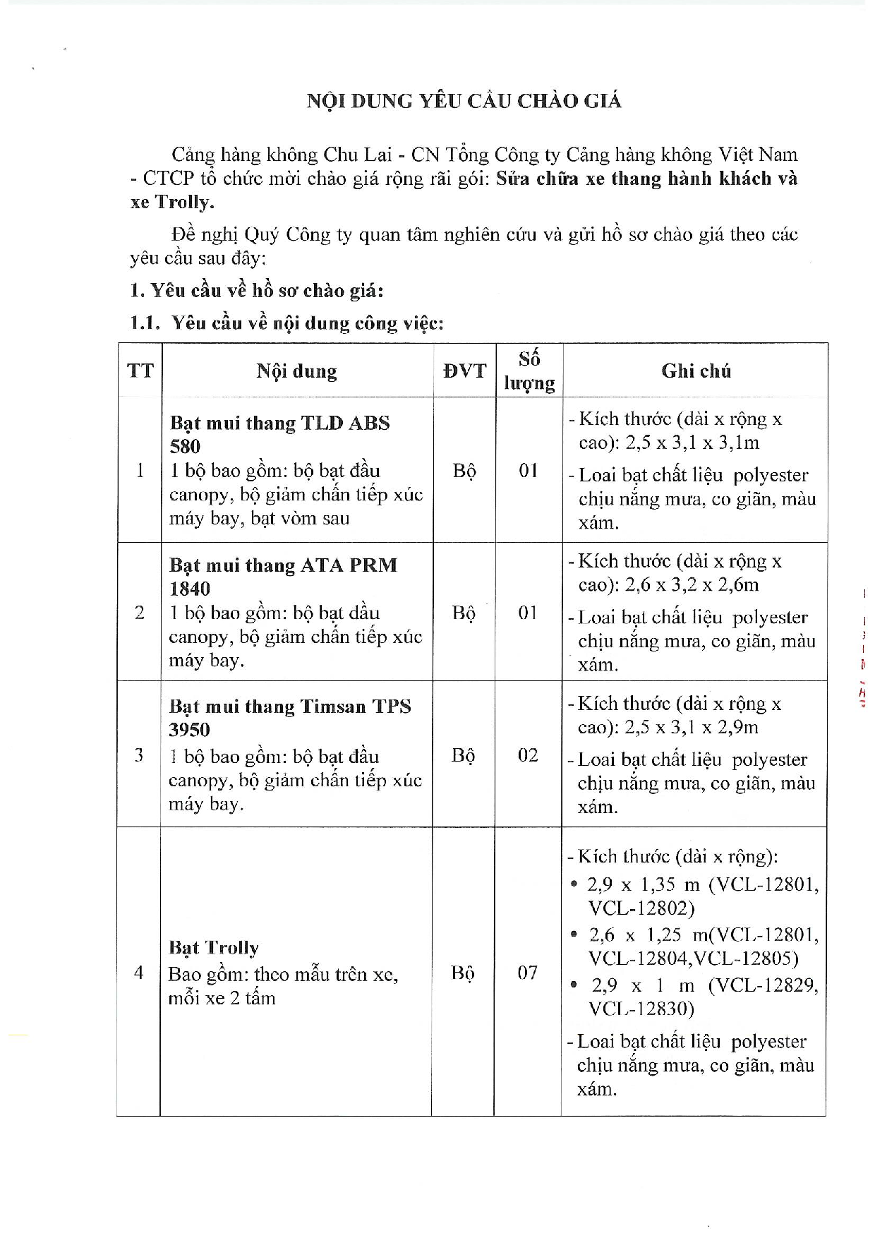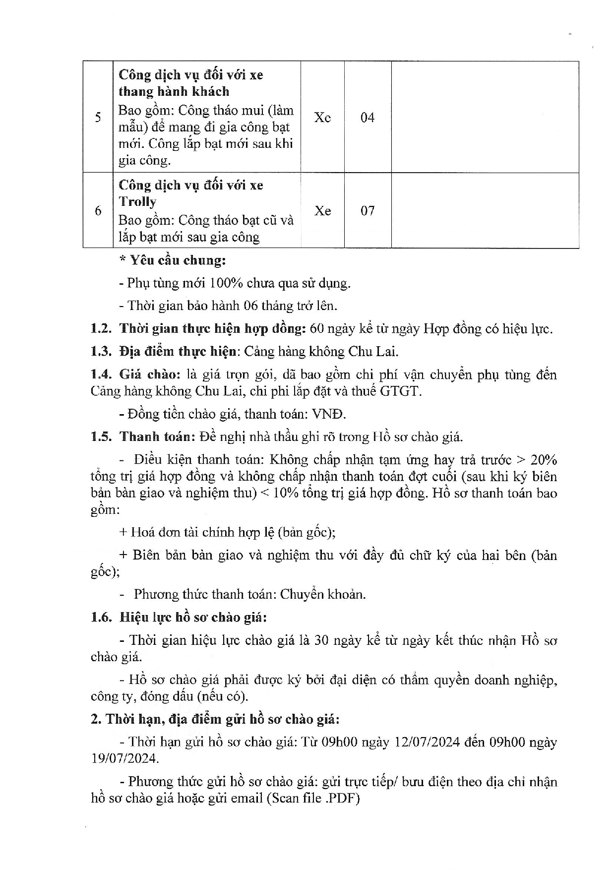 Cảng hàng không Chu Lai thông báo Mời chào giá gói: Sửa chữa xe thang hành khách và xe Trolly