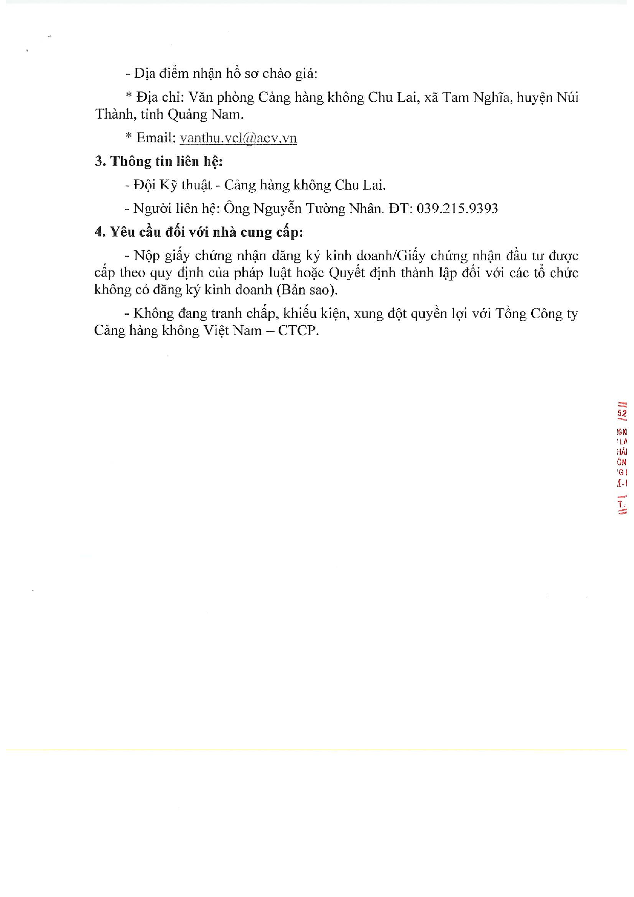 THÔNG BÁO VỀ VIỆC MỜI THAM GIA "HỢP TÁC KINH DOANH VÀ KINH DOANH VỊ TRÍ QUẢNG CÁO TẠI CẢNG HÀNG KHÔNG CHU LAI"