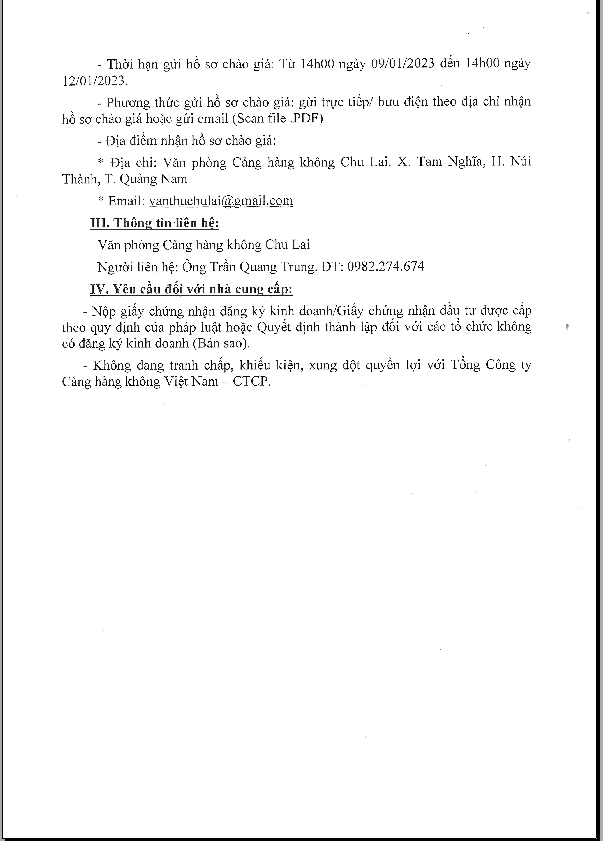 THÔNG BÁO VỀ VIỆC MỜI THAM GIA "HỢP TÁC KINH DOANH VÀ KINH DOANH VỊ TRÍ QUẢNG CÁO TẠI CẢNG HÀNG KHÔNG CHU LAI"