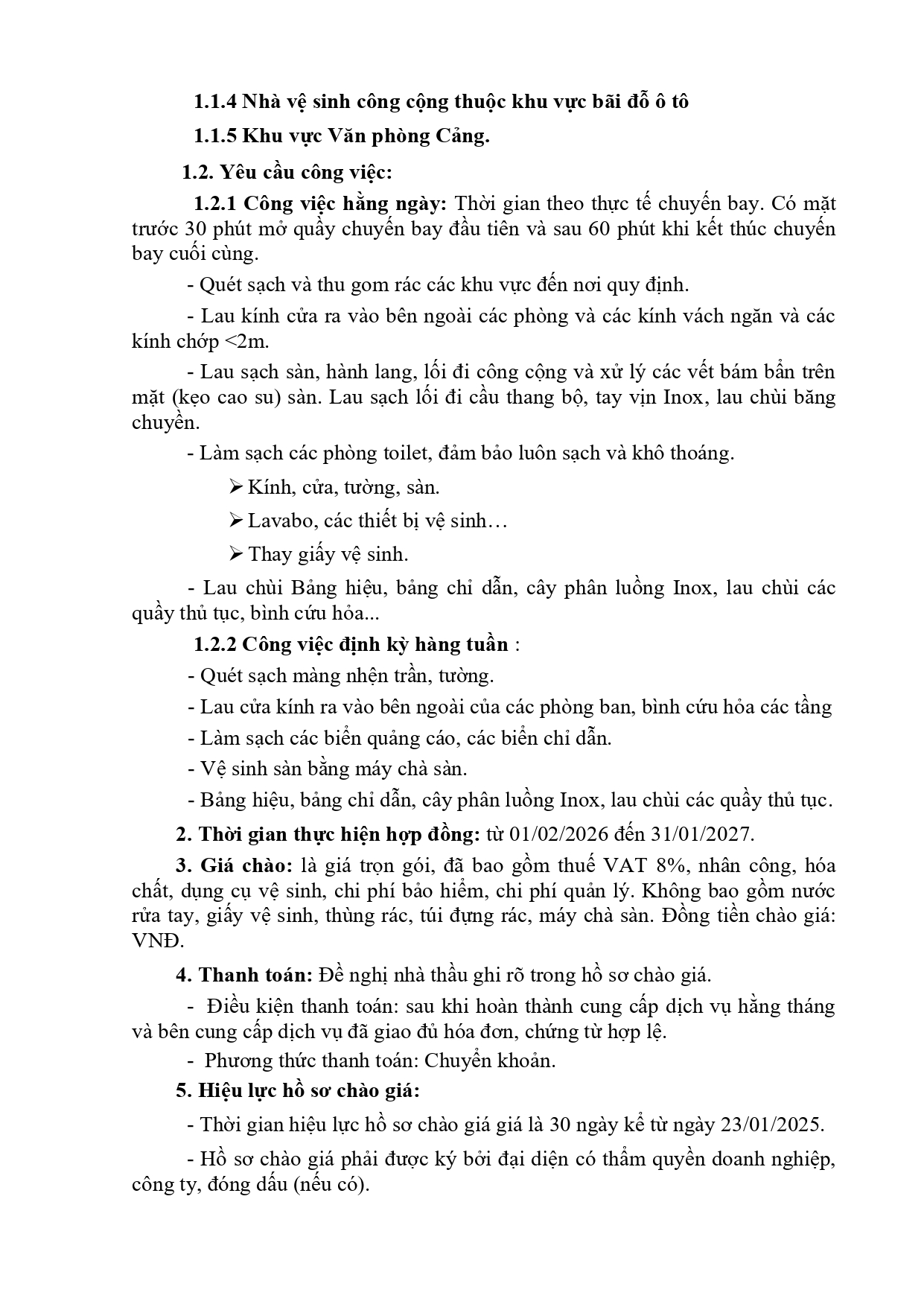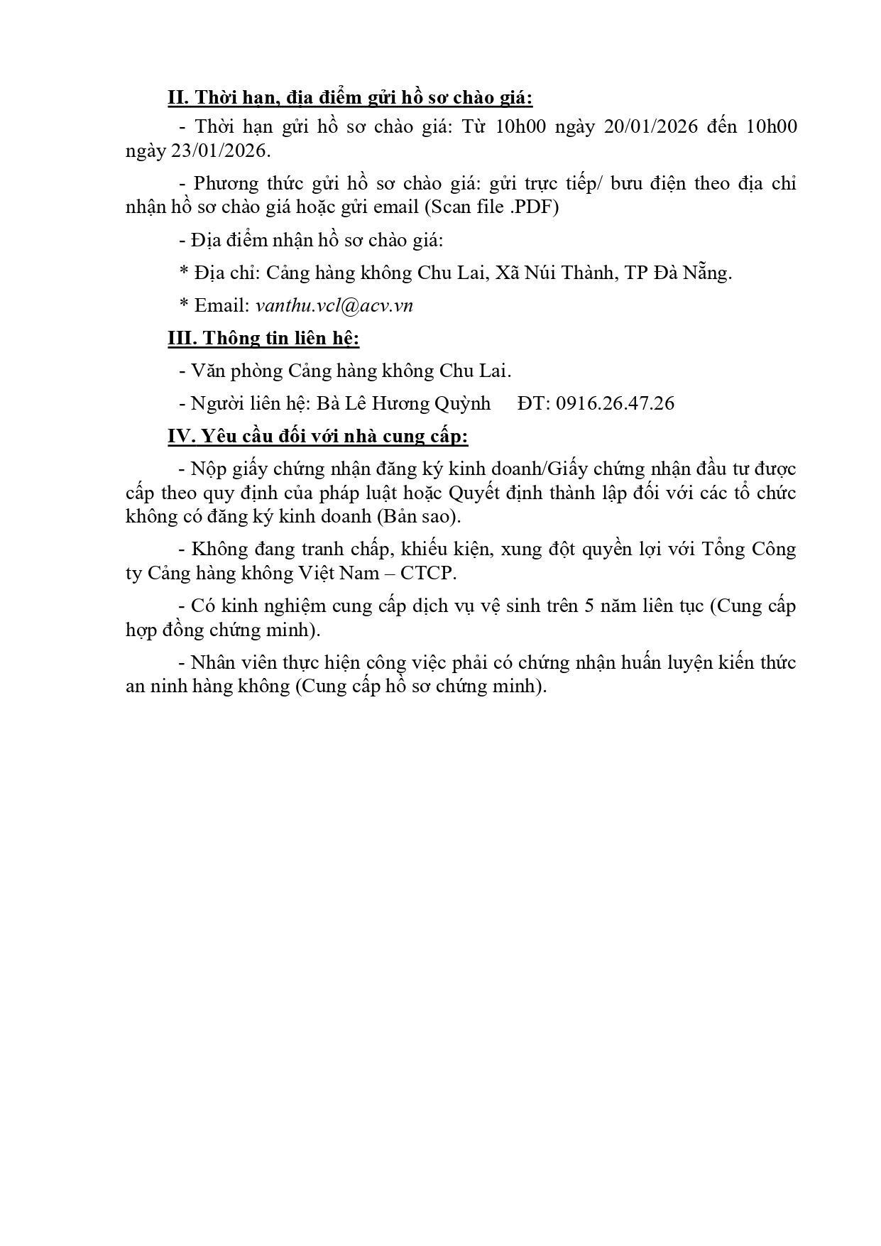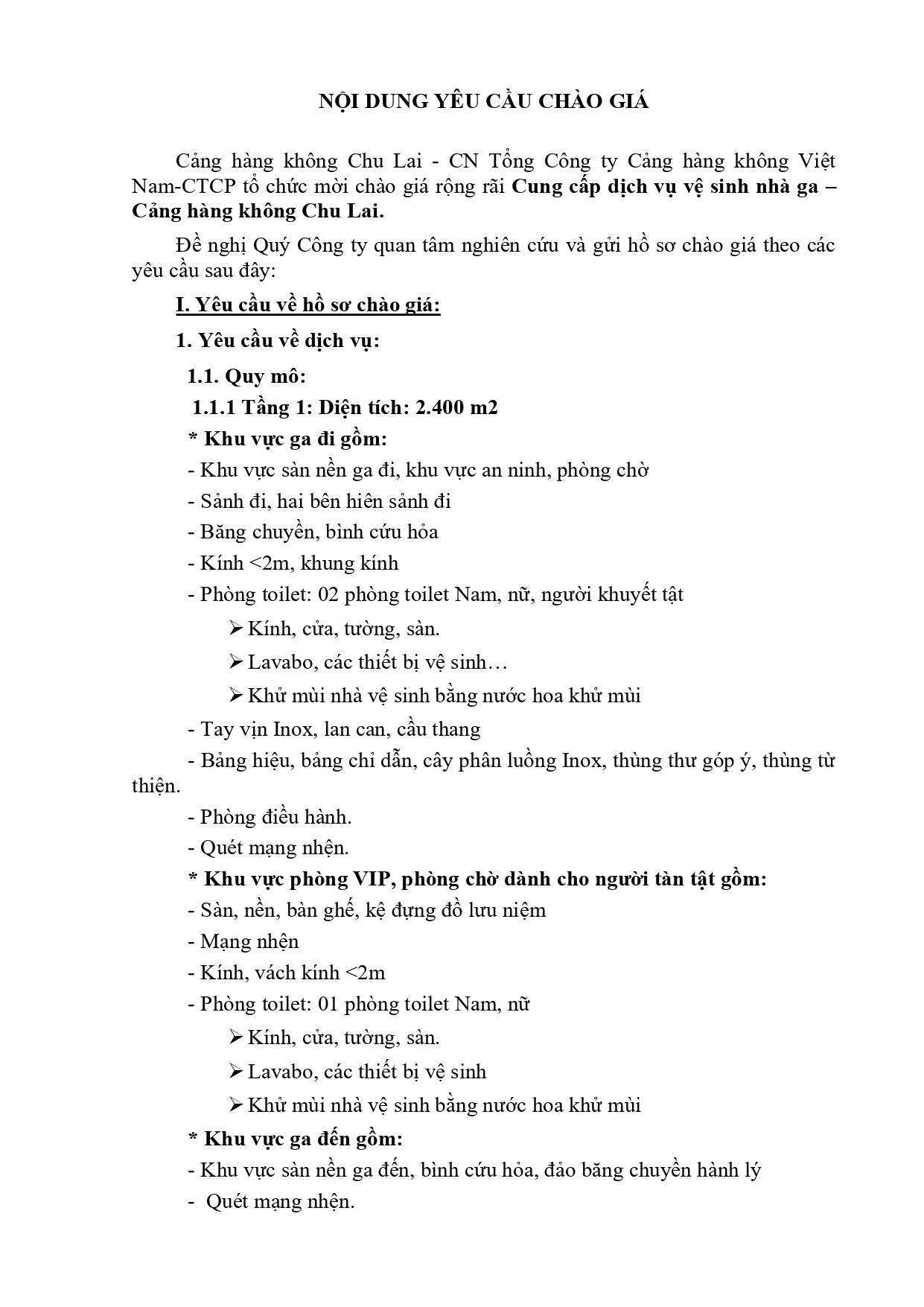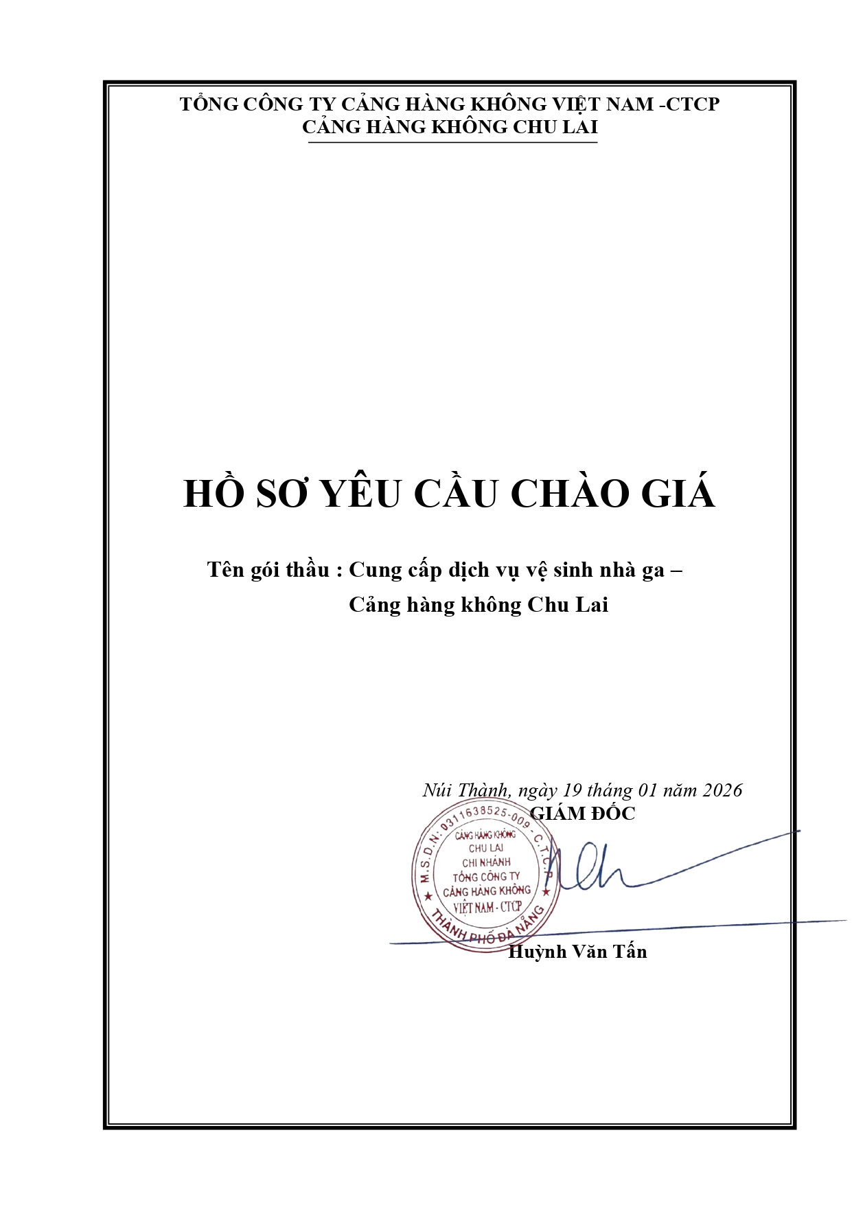 HỒ SƠ YÊU CẦU CHÀO GIÁ GÓI THẦU "CUNG CẤP DỊCH VỤ VỆ SINH NHÀ GA NĂM 2026 - CẢNG HÀNG KHÔNG CHU LAI"