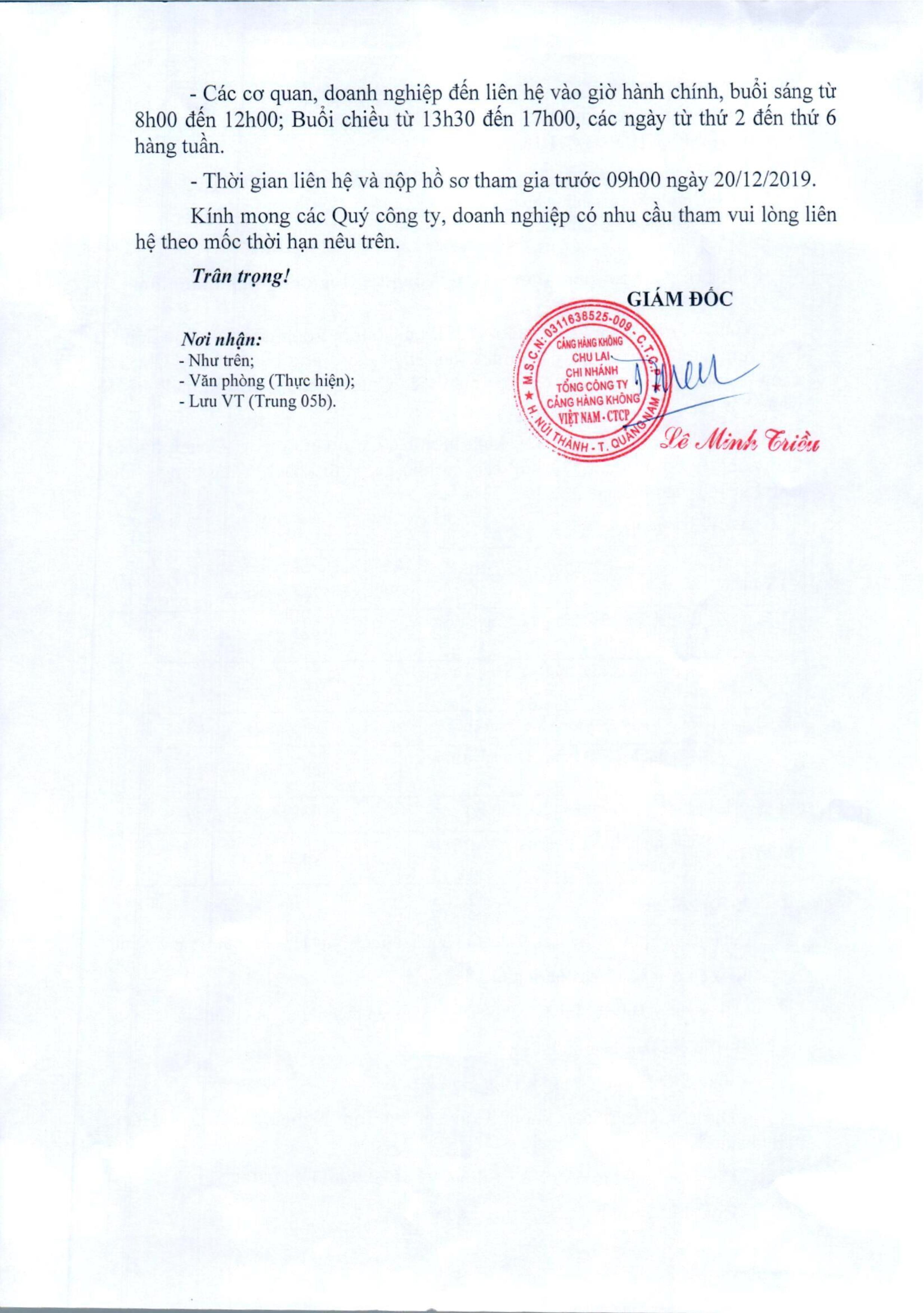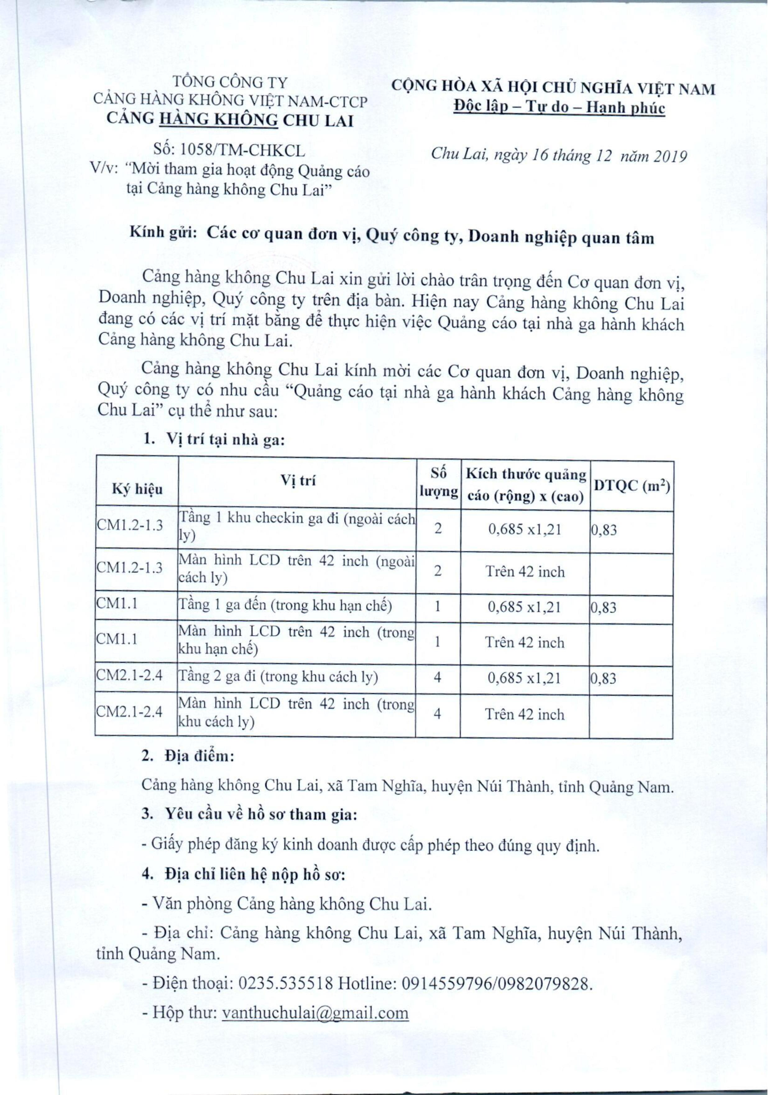THÔNG BÁO VỀ VIỆC MỜI THAM GIA "HỢP TÁC KINH DOANH VÀ KINH DOANH VỊ TRÍ QUẢNG CÁO TẠI CẢNG HÀNG KHÔNG CHU LAI"