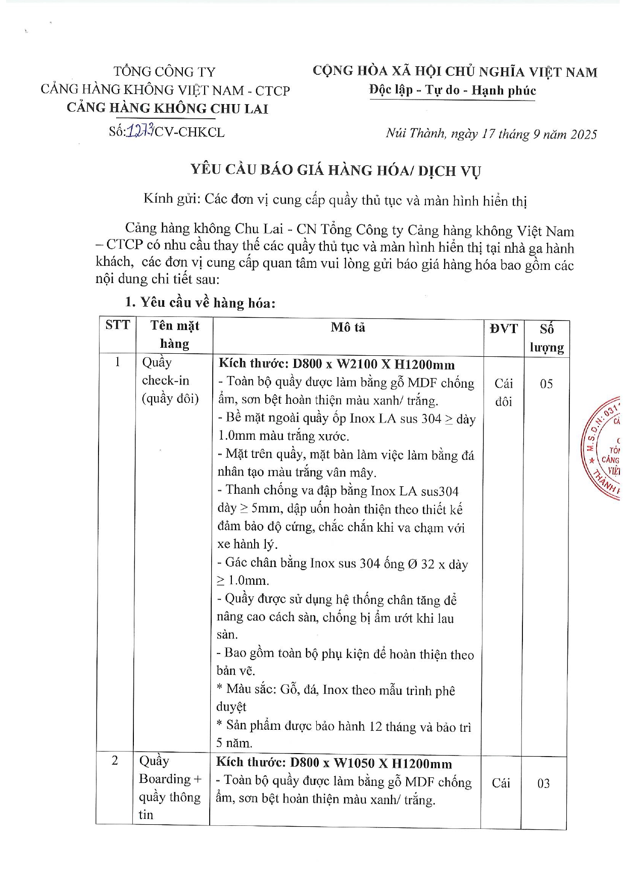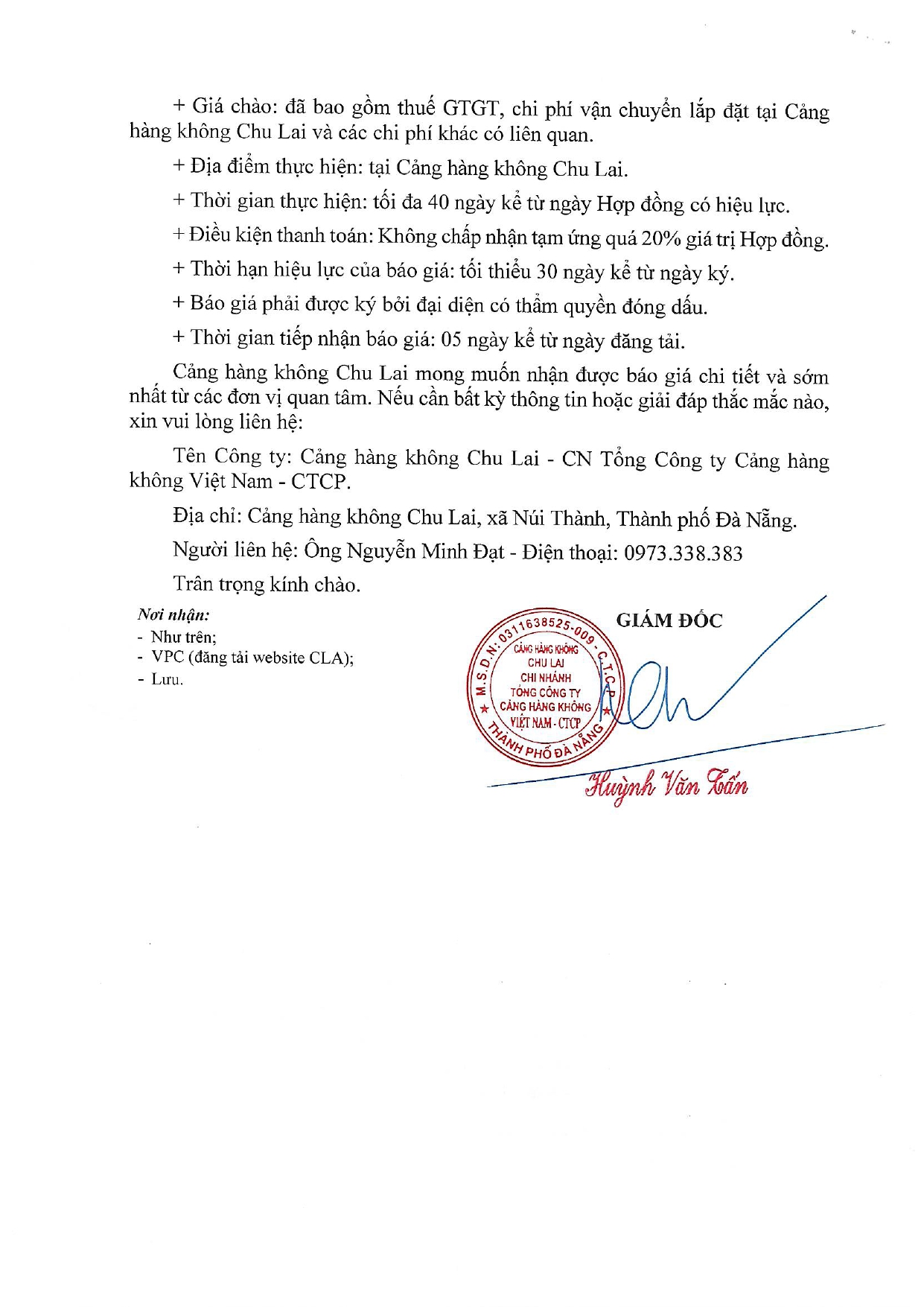THÔNG BÁO VỀ VIỆC MỜI THAM GIA "HỢP TÁC KINH DOANH VÀ KINH DOANH VỊ TRÍ QUẢNG CÁO TẠI CẢNG HÀNG KHÔNG CHU LAI"