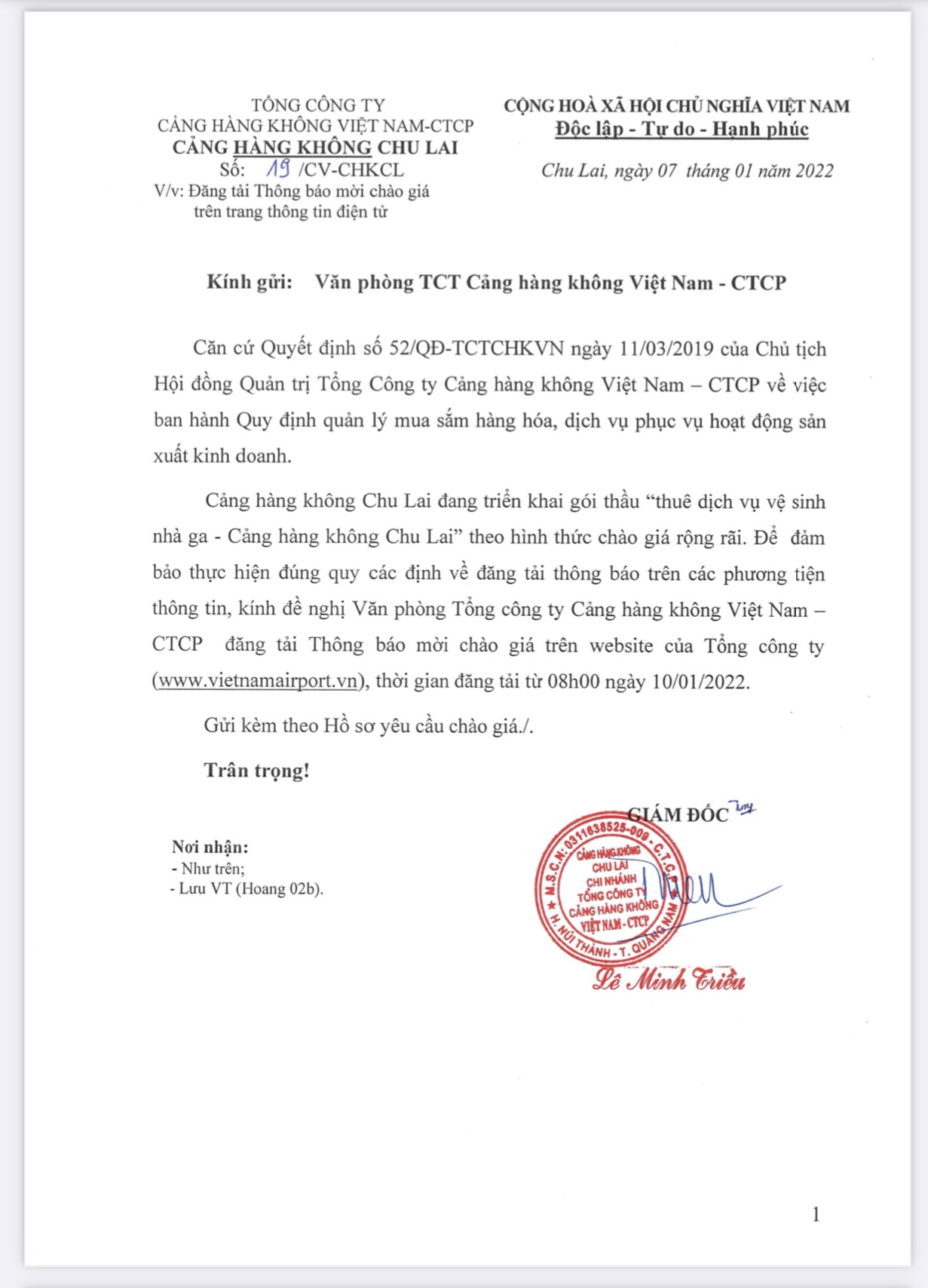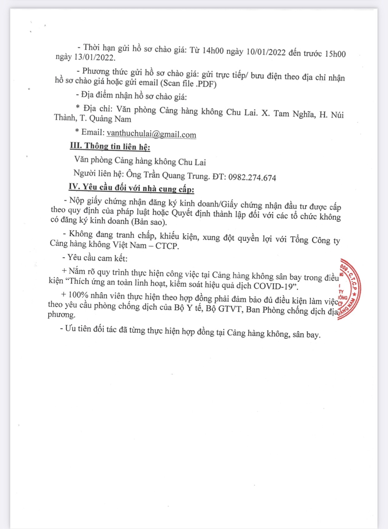 THÔNG BÁO VỀ VIỆC MỜI THAM GIA "HỢP TÁC KINH DOANH VÀ KINH DOANH VỊ TRÍ QUẢNG CÁO TẠI CẢNG HÀNG KHÔNG CHU LAI"