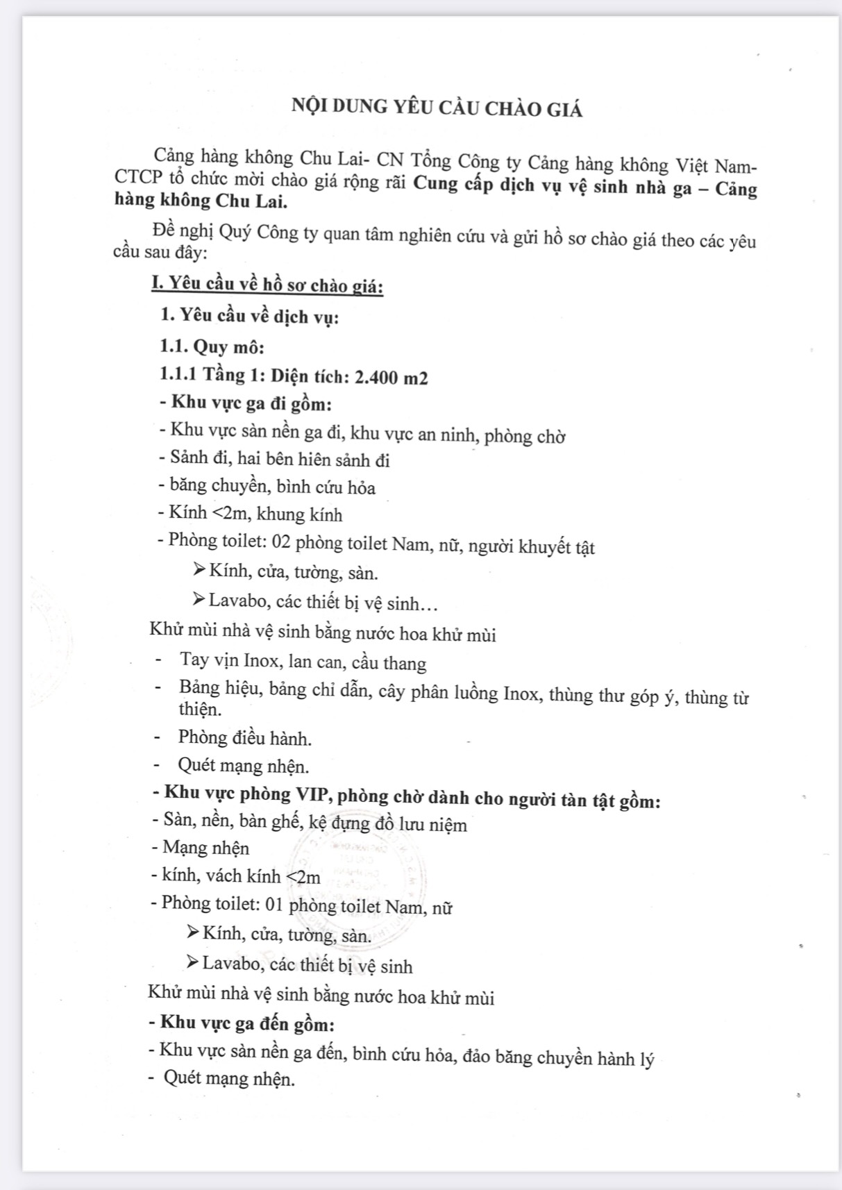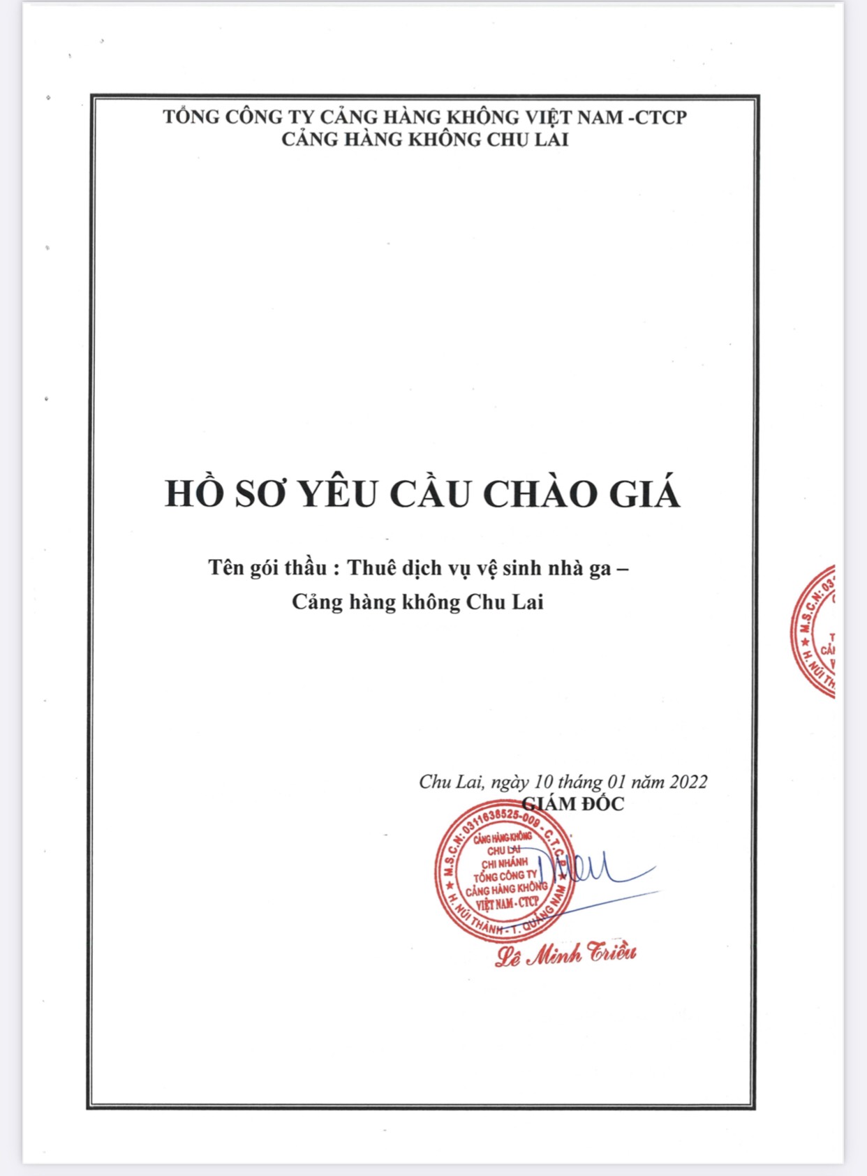 Tên gói thầu: Thuê dịch vụ vệ sinh nhà ga- Cảng hàng không Chu Lai
