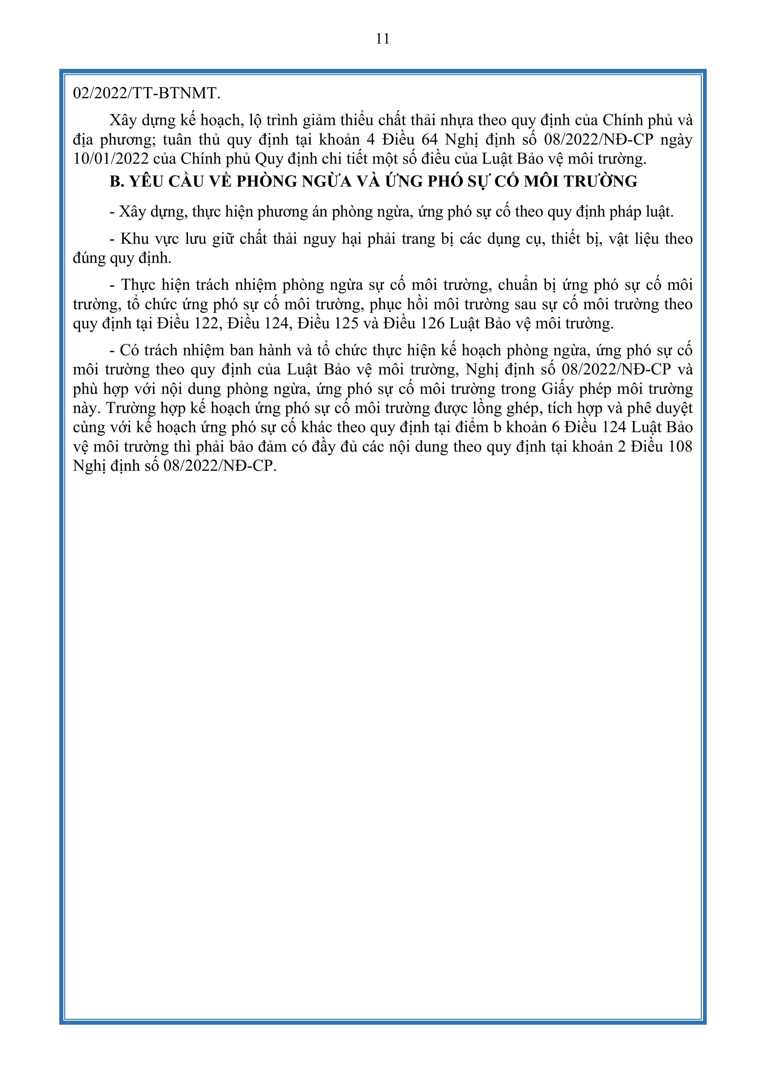 Căn cứ Nghị định số 08/2022/NĐ-CP ngày 10 tháng 01 năm 2022 của Chính phủ quy định chi tiết một số điều của Luật Bảo vệ môi trường;