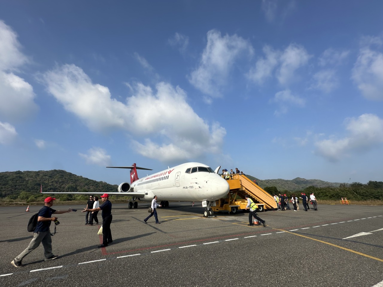 Chuyến bay sử dụng dòng máy bay thương mại ARJ21-700 (Advanced Regional Jet for the 21st Century) do Trung Quốc sản xuất lần đầu tiên hạ cánh xuống sân bay Côn Đảo. Trên chuyến bay chở 60 hành khách. Chuyến bay được thực hiện với mục đích bay trình diễn giới thiệu dòng sản phẩm máy bay mới của một công ty tại Trung Quốc. Đây là dòng máy bay phản lực hai động cơ với tối đa 90 chỗ ngồi, mỗi hàng có 5 ghế, hai động cơ CF34-10A được lắp ở đuôi máy bay./.