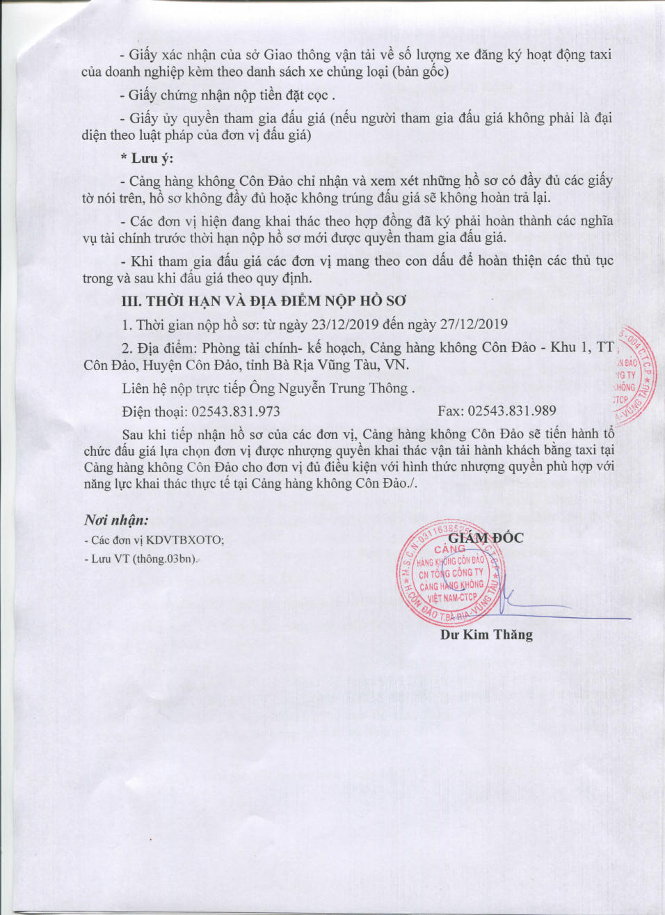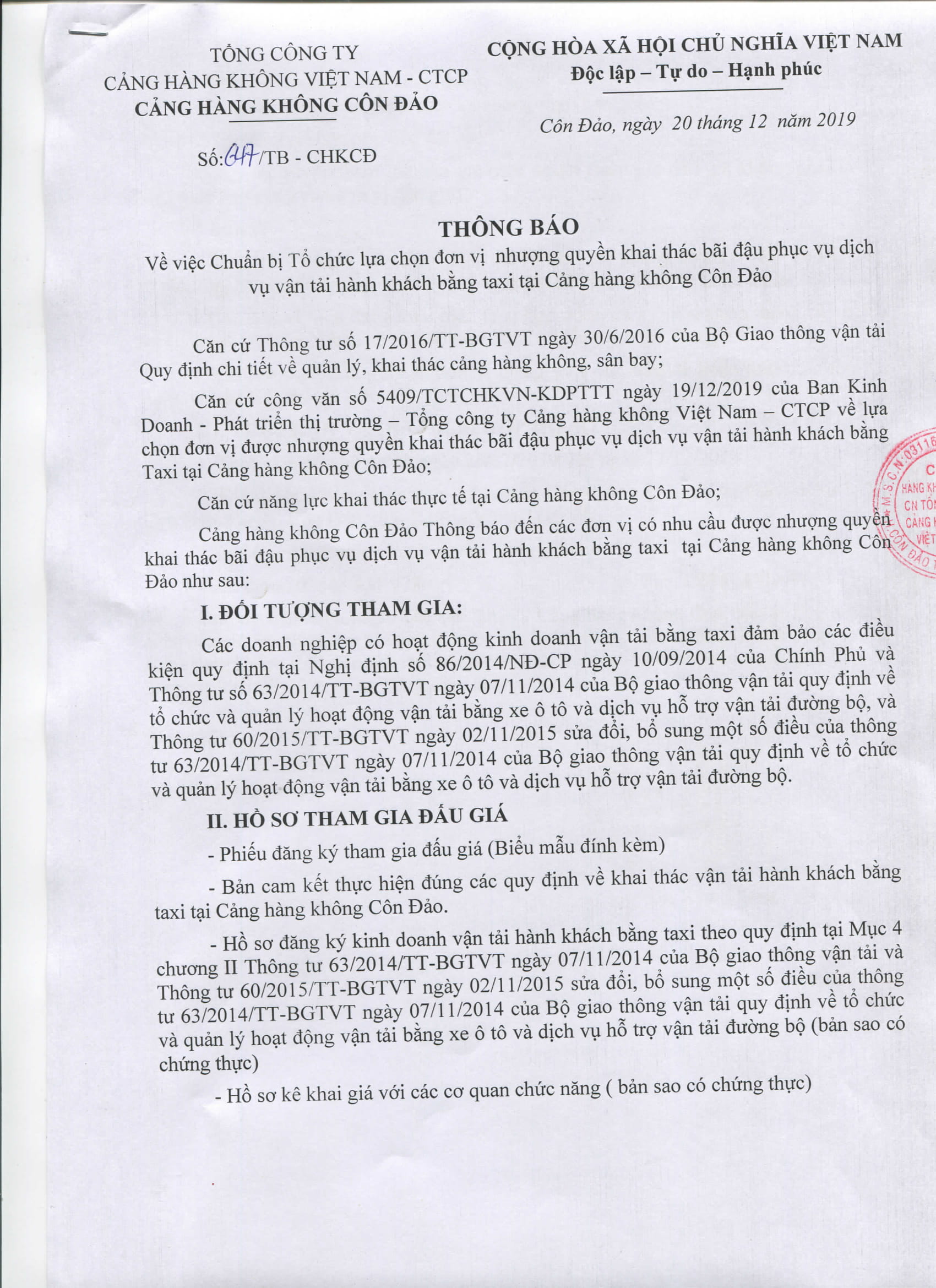 CẢNG HÀNG KHÔNG CÔN ĐẢO THÔNG BÁO MỜI THẦU