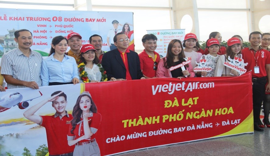 Figure 3. The first passengers on the Da Nang - Da Lat flight took photos as a souvenir with Vietjet Air's representatives.