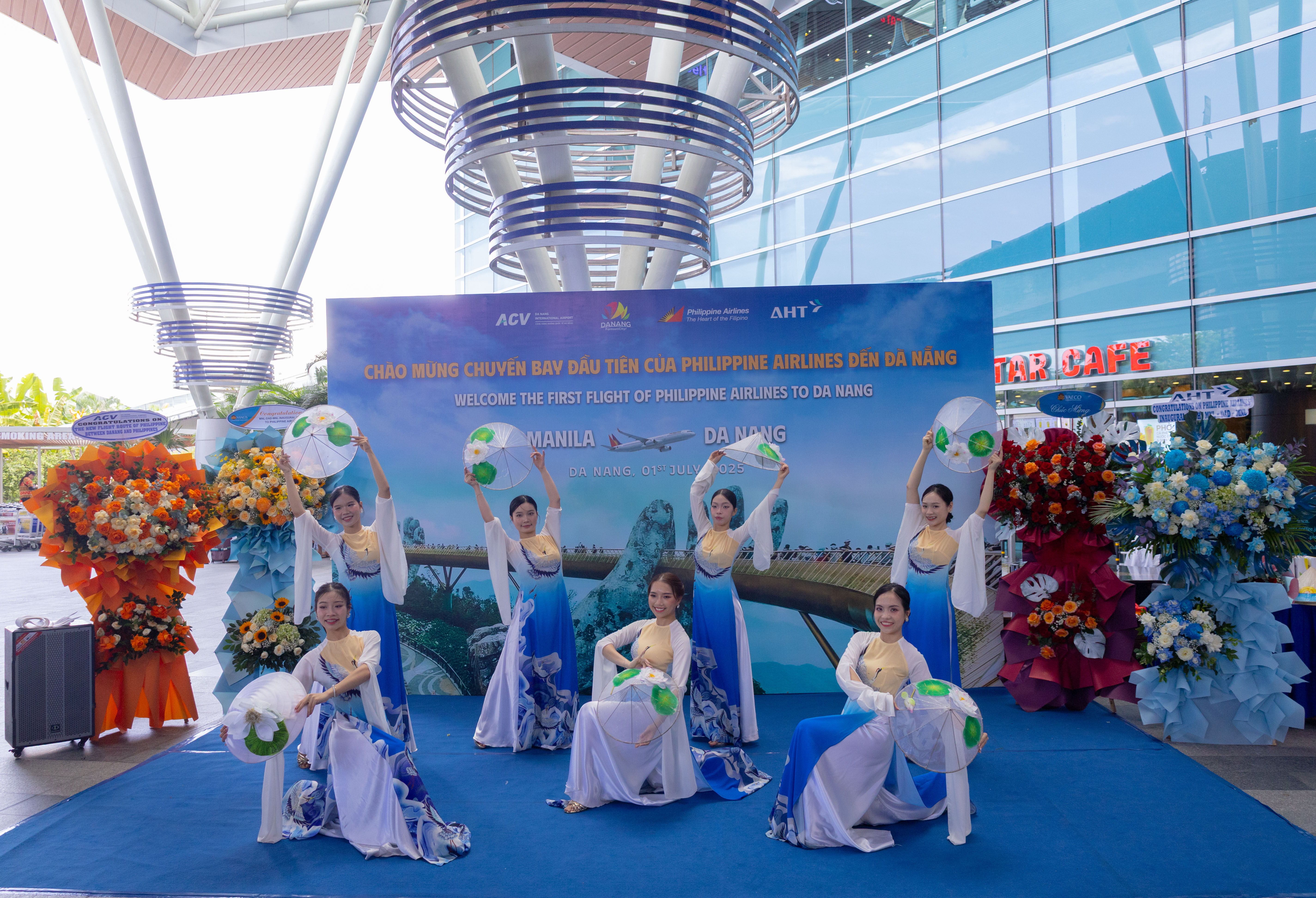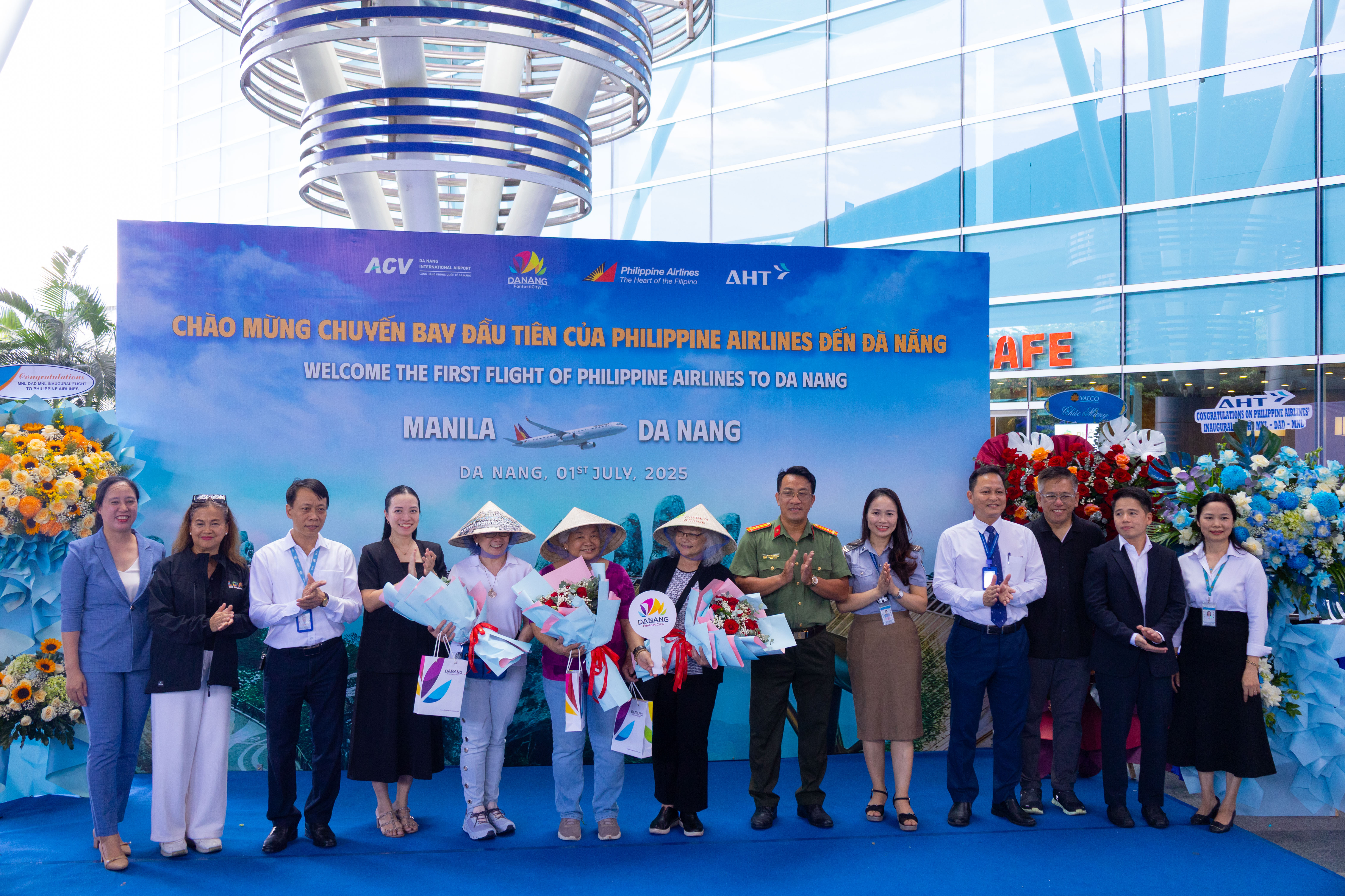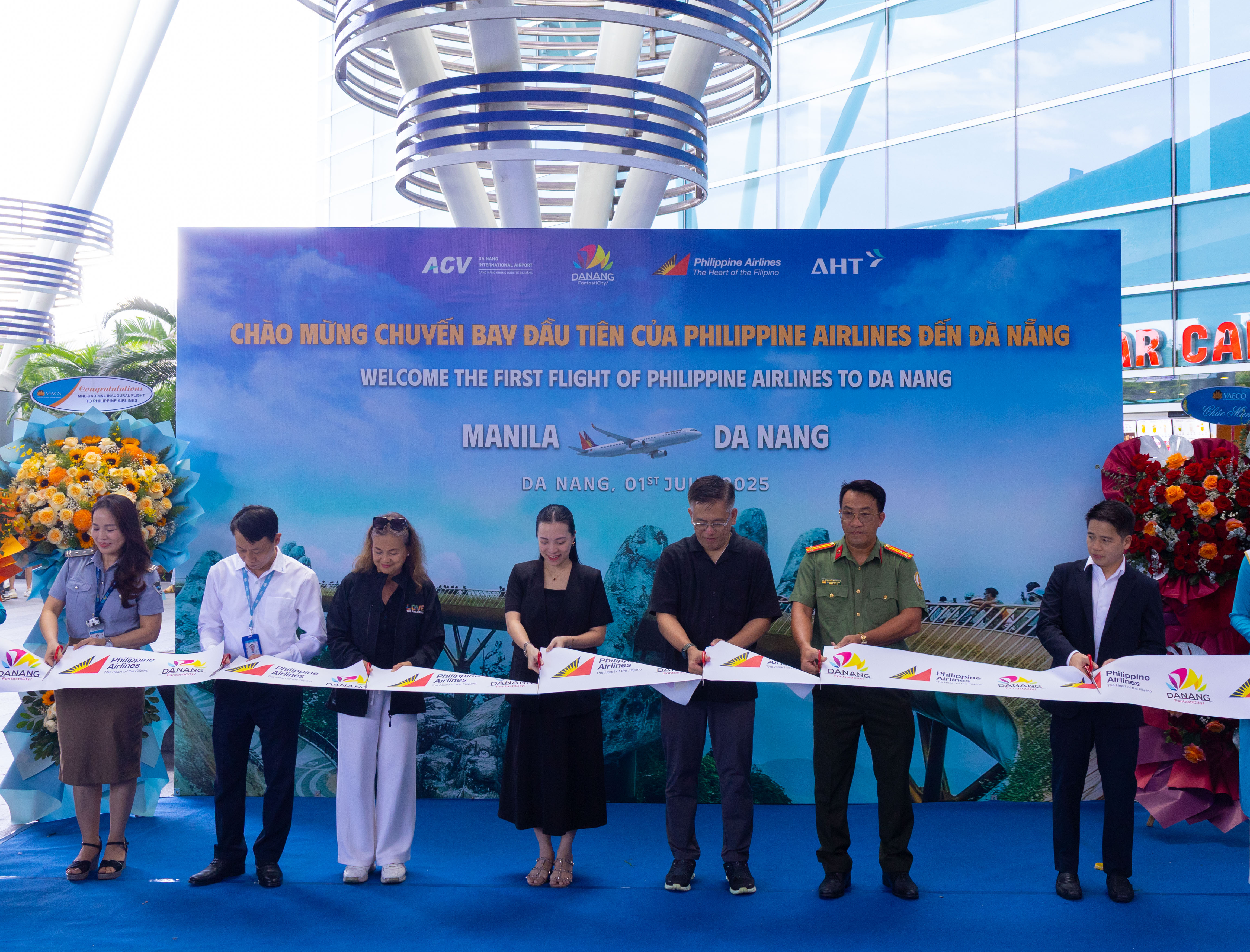 Vào lúc 12h45 phút ngày 1/7/2025, Cảng hàng không quốc tế (HKQT) Đà Nẵng chào đón chuyến bay mang số hiệu hiệu PR 585 của Philippine Airlines của hãng hàng không quốc gia Philippines cũng 193 hành khách trong chuyến bay đầu tiên đến thành phố Đà Nẵng. Tham dự đón khách có sự tham gia của lãnh đạo sở Văn hóa Thể thao và Du lịch thành phố Đà Nẵng, Cảng vụ hàng không miền Trung, Công an cửa khẩu Cảng HKQT Đà Nẵng, Hải quan Cảng HKQT Đà Nẵng, Công ty Cổ phần Đầu tư và Khai thác Nhà ga quốc tế Đà Nẵng và các cơ quan thông tấn báo chí tại Đà Nẵng đưa tin viết bài.