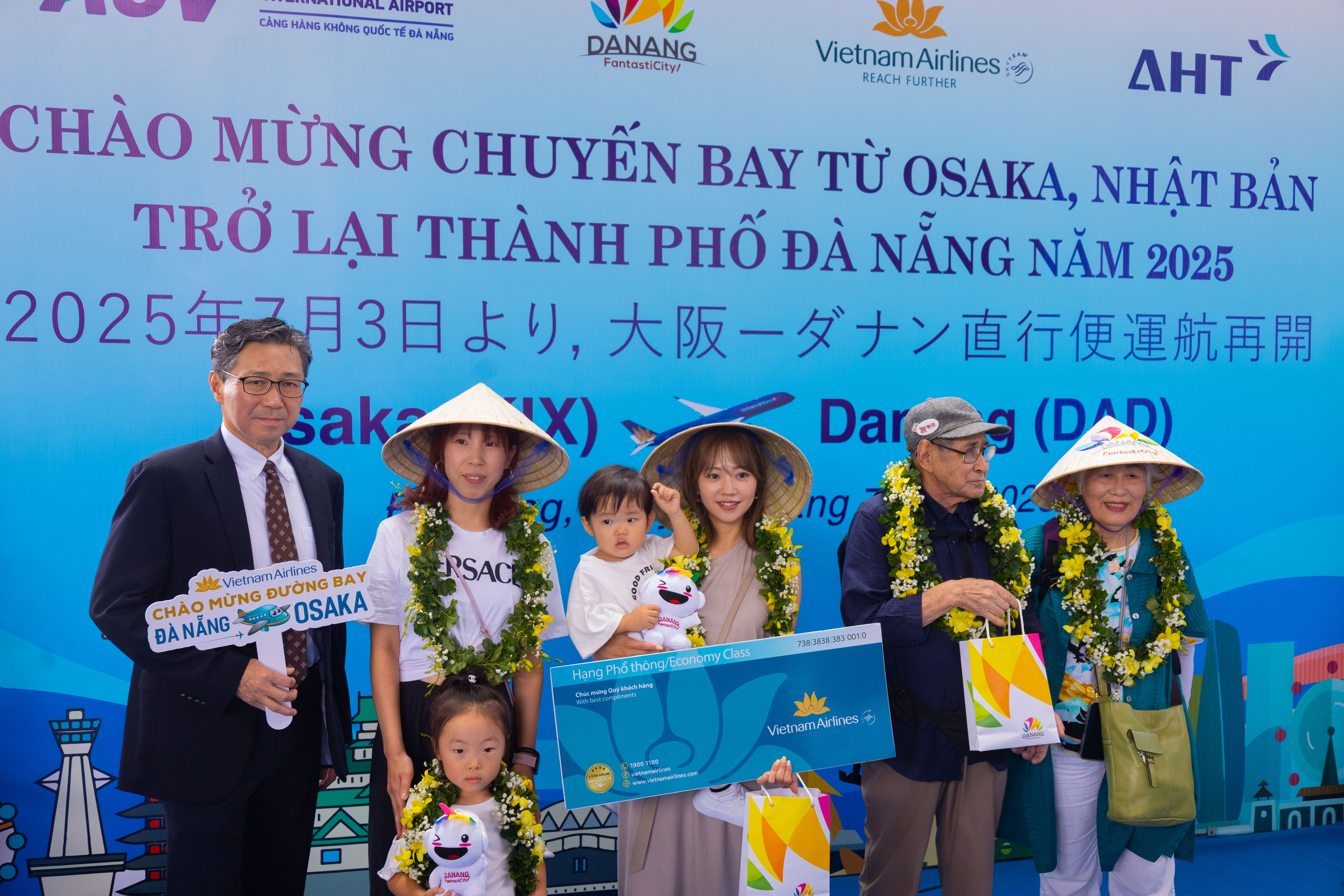 Lễ chào mừng có sự tham dự của đại diện Cảng hàng không quốc tế Đà Nẵng, Sở Du lịch TP. Đà Nẵng, Cảng vụ Hàng không miền Trung, Công an cửa khẩu, Hải quan, các đơn vị phục vụ mặt đất tại sân bay cùng lãnh đạo Vietnam Airlines khu vực miền Trung và đại diện Tổng cục Du lịch Nhật Bản tại Việt Nam.