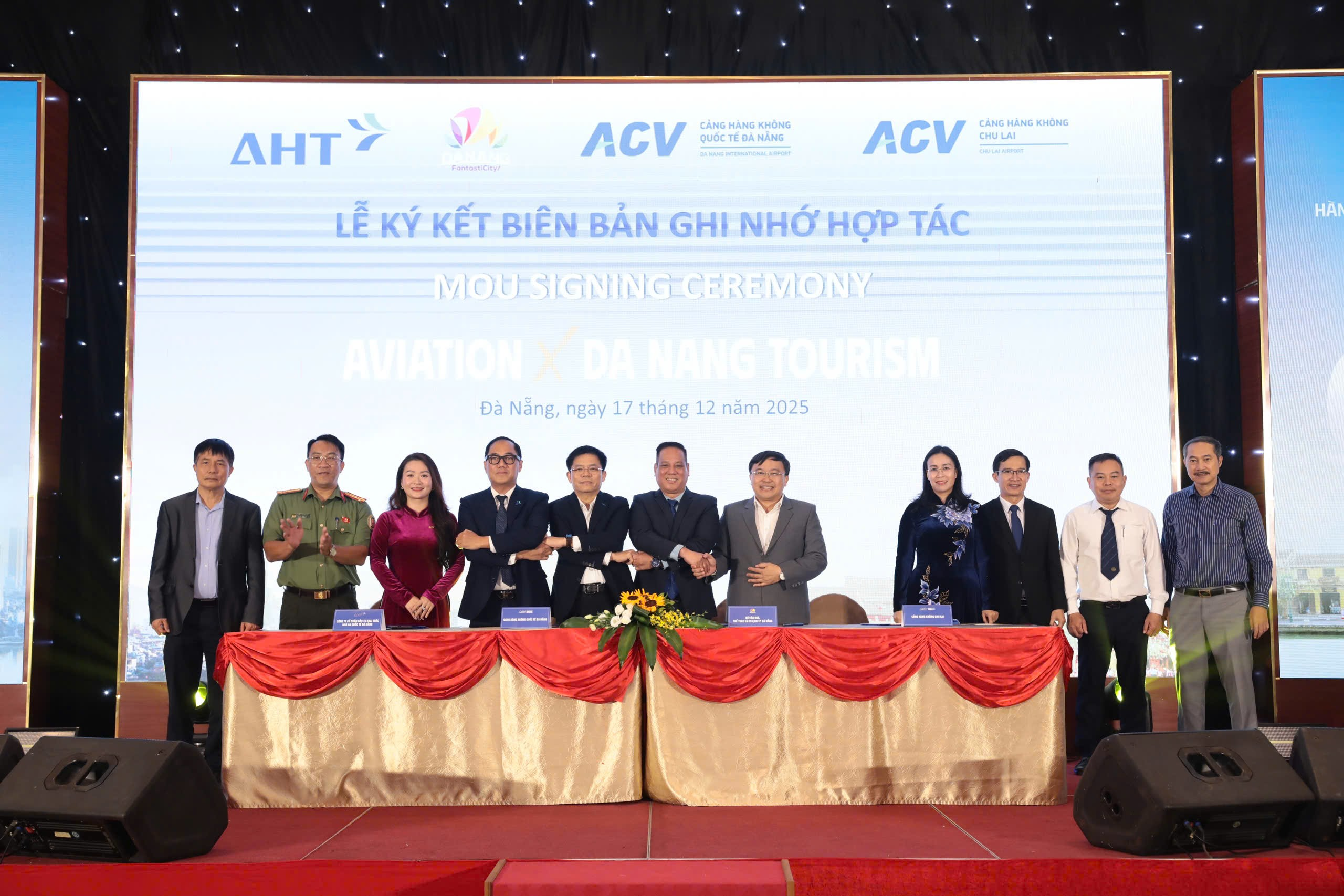 Tối 17/12, trong khuôn khổ chương trình Gặp gỡ “Hàng không đồng hành Du lịch Đà Nẵng 2025”, Cảng hàng không quốc tế Đà Nẵng đã cùng Sở Văn hóa, Thể thao và Du lịch TP Đà Nẵng, Cảng hàng không Chu Lai và Công ty Cổ phần Đầu tư Khai thác Nhà ga Quốc tế Đà Nẵng ký kết Biên bản ghi nhớ hợp tác chiến lược giai đoạn 2026–2030.