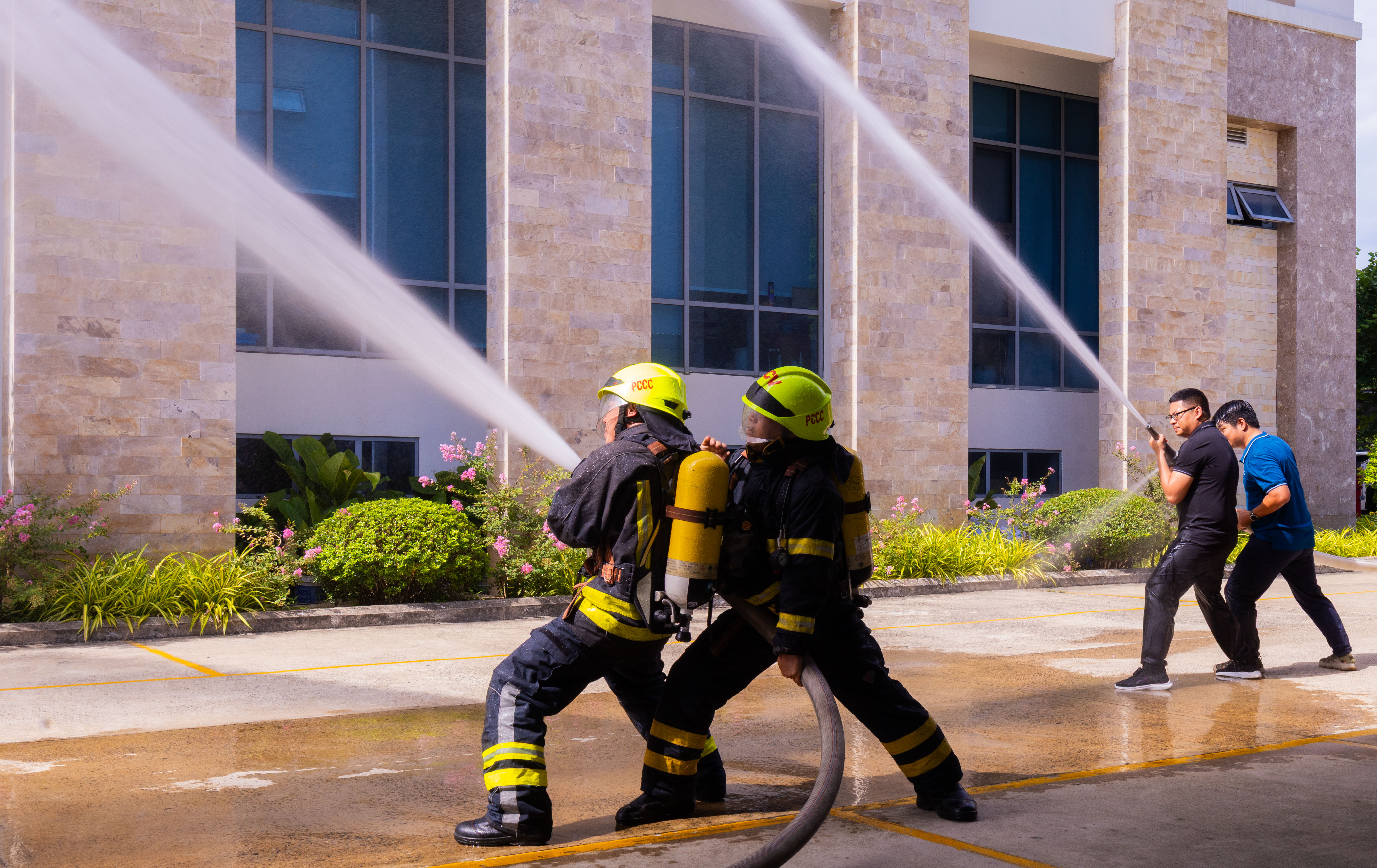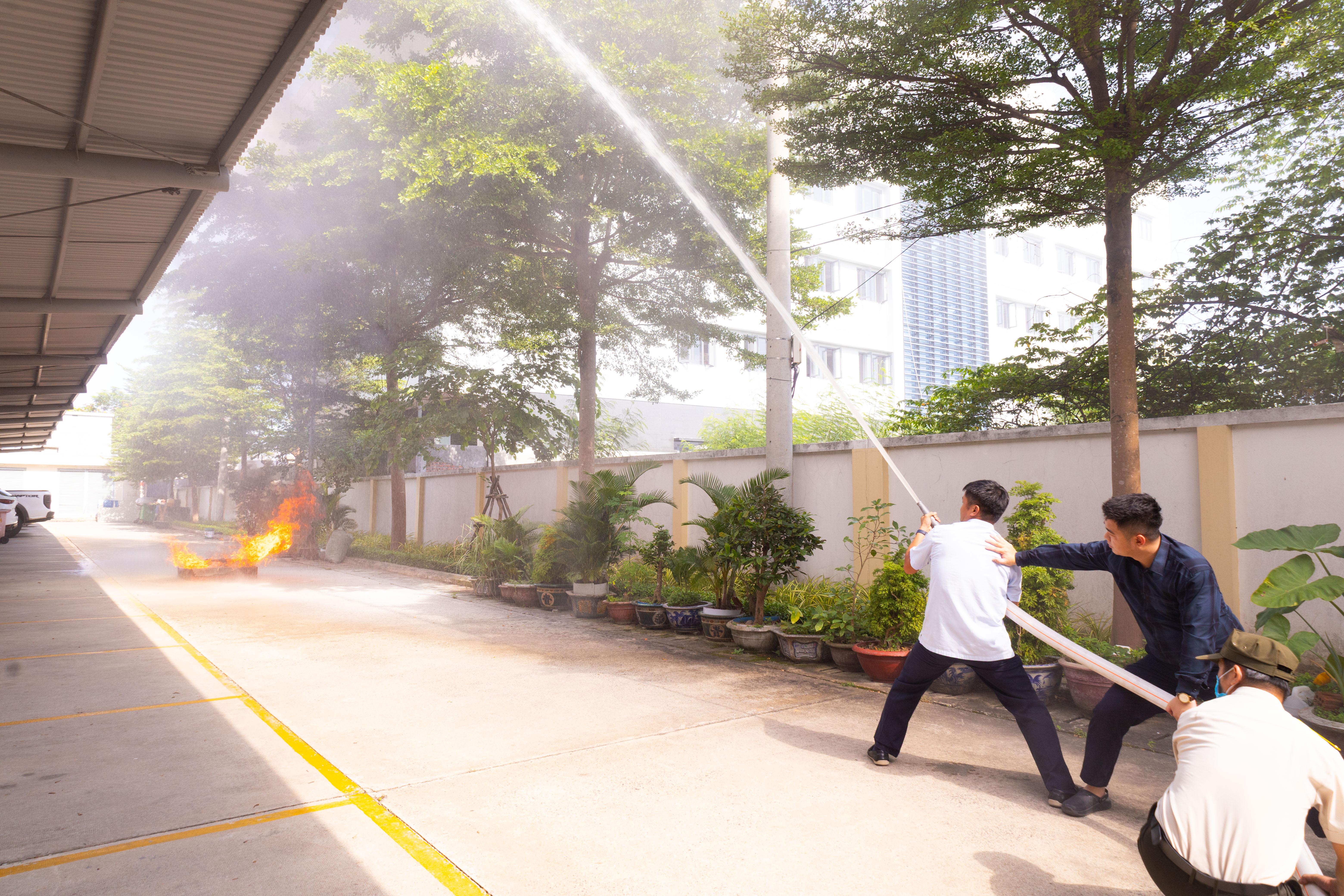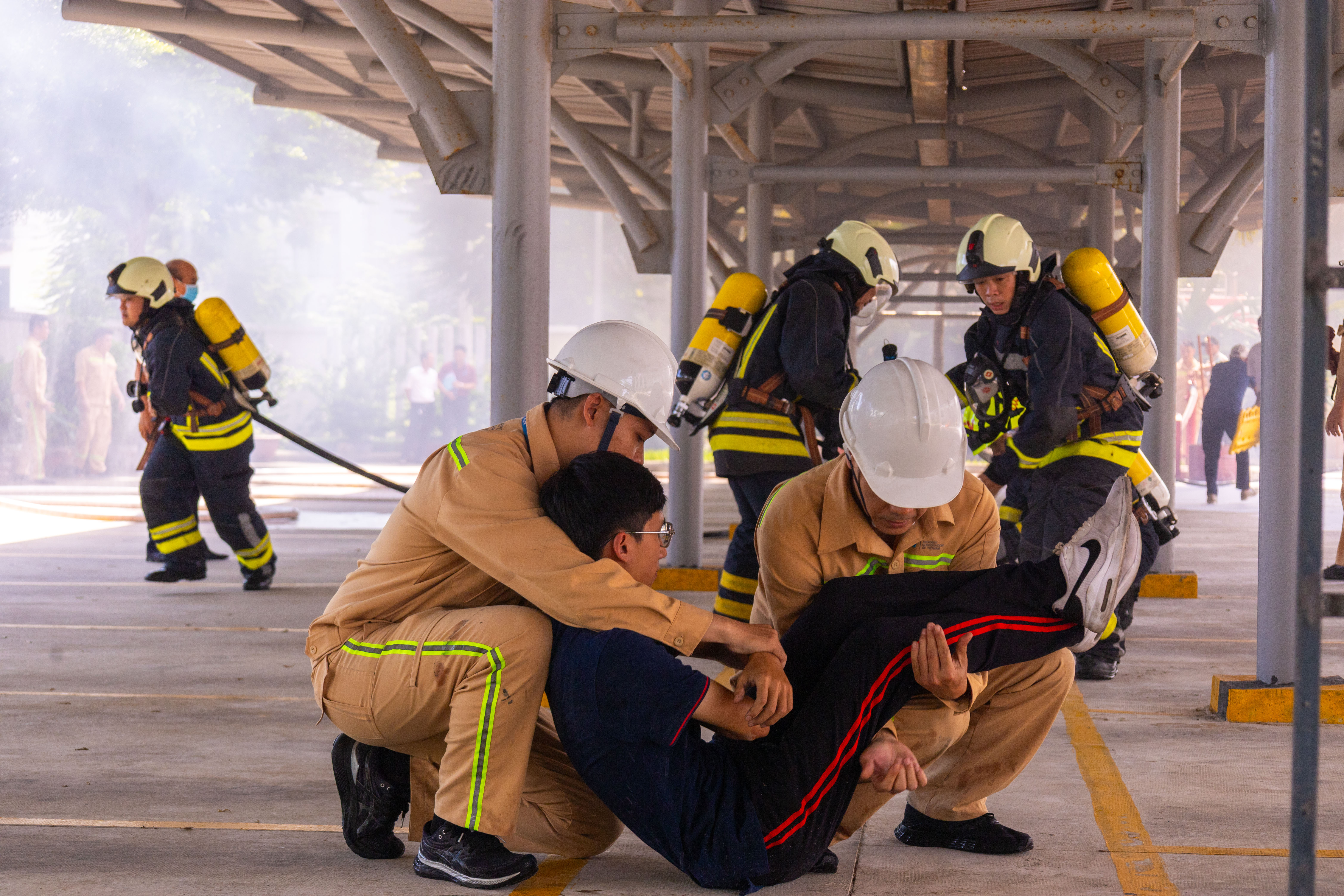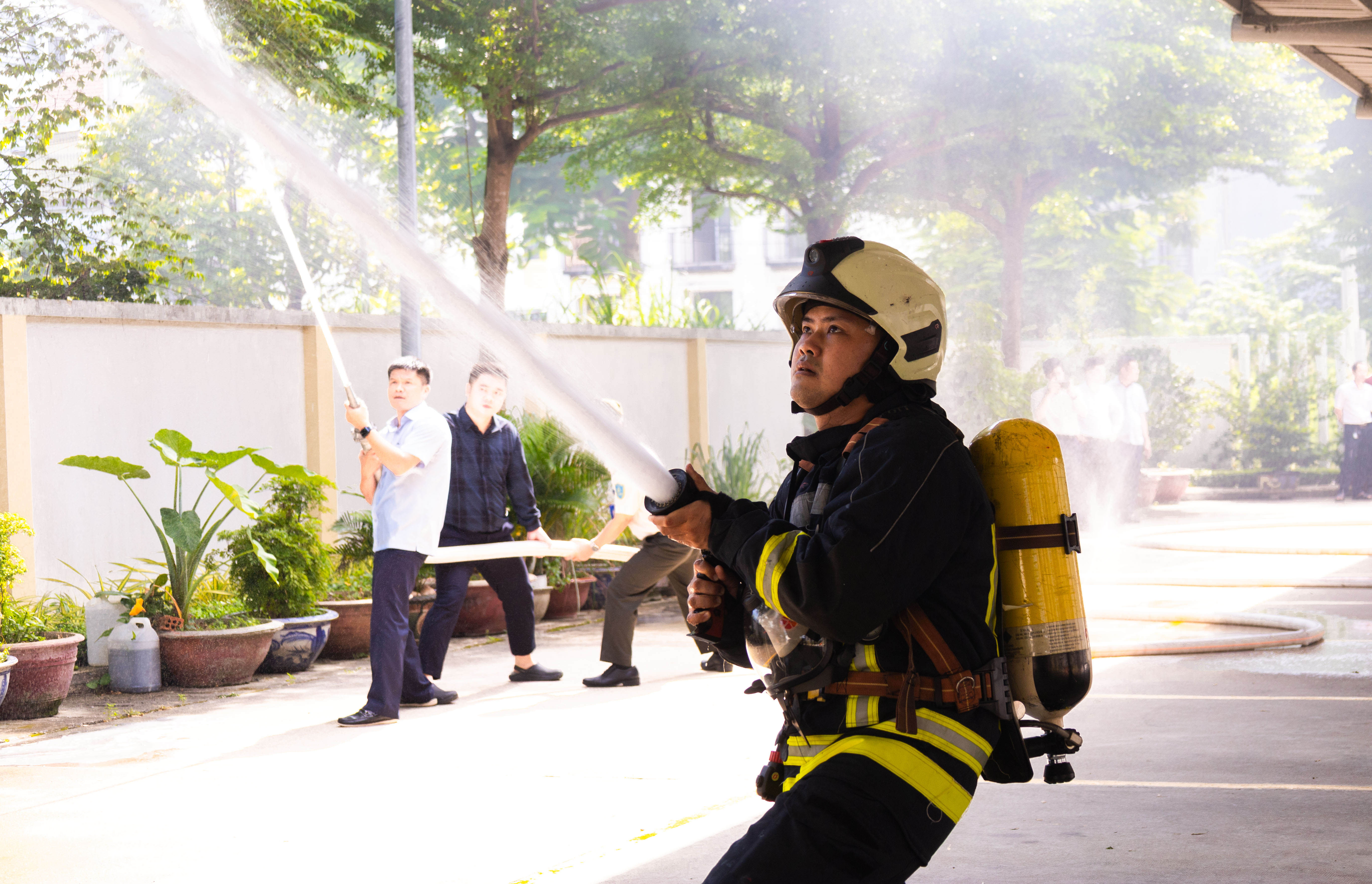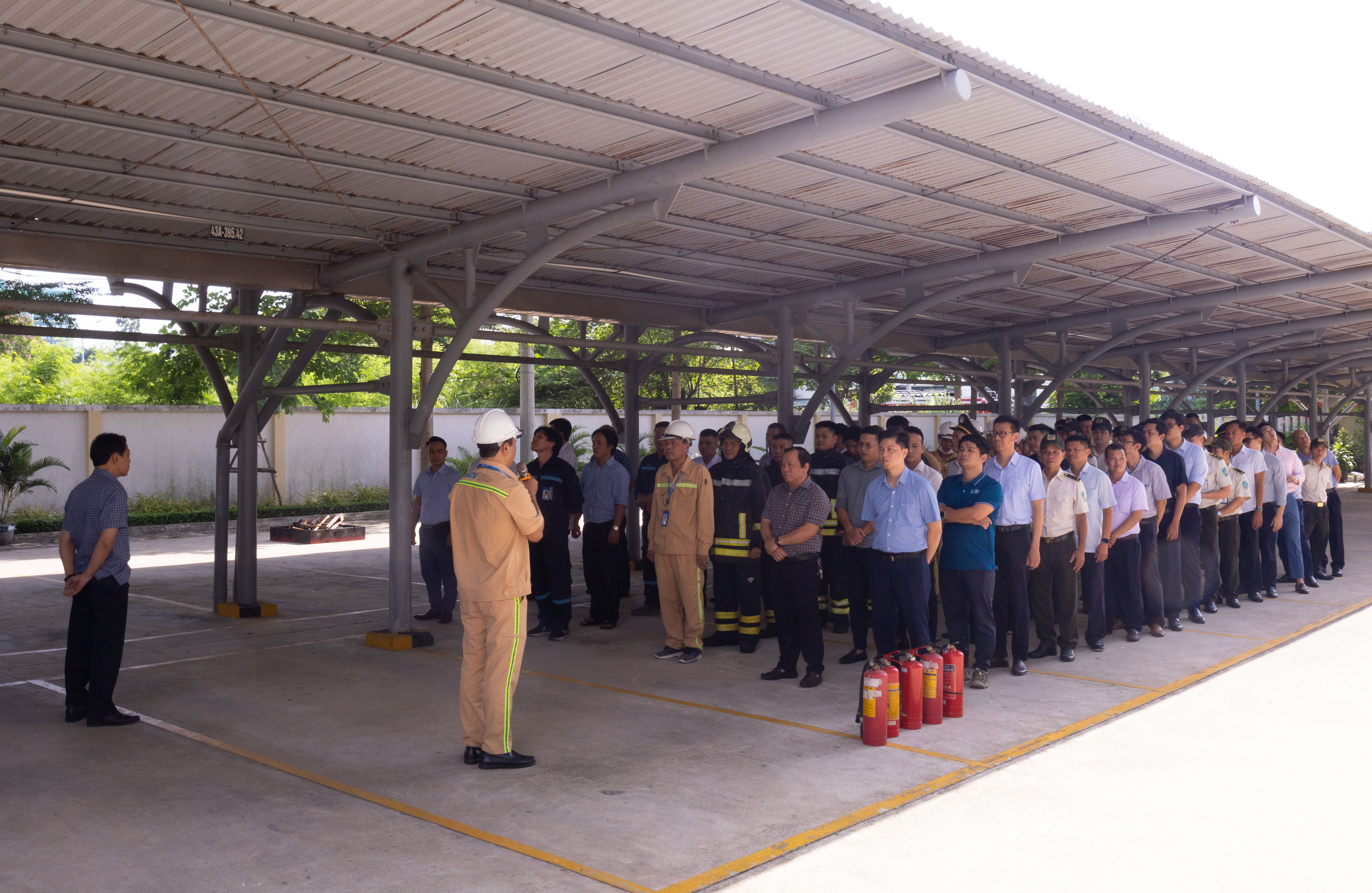 Tình huống giả định là một vụ cháy phát sinh tại khu vực gara ô tô xe máy tại trụ sở Nhà điều hành. Ngay sau khi phát hiện sự cố, hệ thống báo cháy được kích hoạt. Lực lượng tại chỗ nhanh chóng sơ tán người, đồng thời triển khai biện pháp chữa cháy ban đầu. Song song đó, lực lượng PCCC chuyên ngành được huy động khẩn cấp để xử lý điểm cháy, phối hợp cùng y tế khẩn nguy sơ cấp cứu người bị nạn và bảo vệ an toàn hệ thống điều hành trọng yếu.