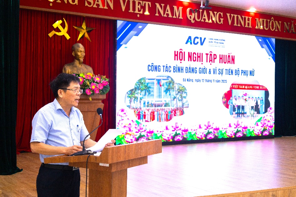 Phát biểu chỉ đạo tại Hội nghị tập huấn, ông Tô Ngọc Hải – Ủy viên Ban Thường vụ Đảng ủy, Phó Giám đốc, Chủ tịch Công đoàn Cảng hàng không quốc tế Đà Nẵng – đã khẳng định bình đẳng giới không chỉ là yêu cầu pháp lý mà còn là yếu tố quan trọng góp phần nâng cao chất lượng nguồn nhân lực. Công tác bình đẳng giới không chỉ là trách nhiệm của phụ nữ mà còn cần có sự tham gia và đồng hành tích cực của nam giới. Đây là cách tiếp cận toàn diện, hướng tới việc xây dựng môi trường làm việc công bằng, nơi mọi cán bộ, công nhân viên, người lao động đều có điều kiện phát huy năng lực và đóng góp hiệu quả.