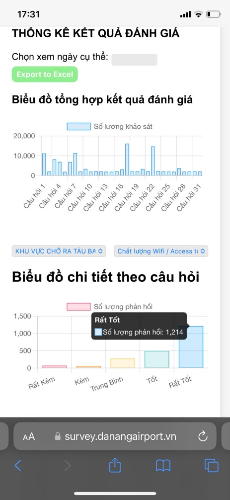 Biểu đồ theo dõi kết quả khảo sát chất lượng hệ thống Wifi tại sân bay Đà Nẵng.