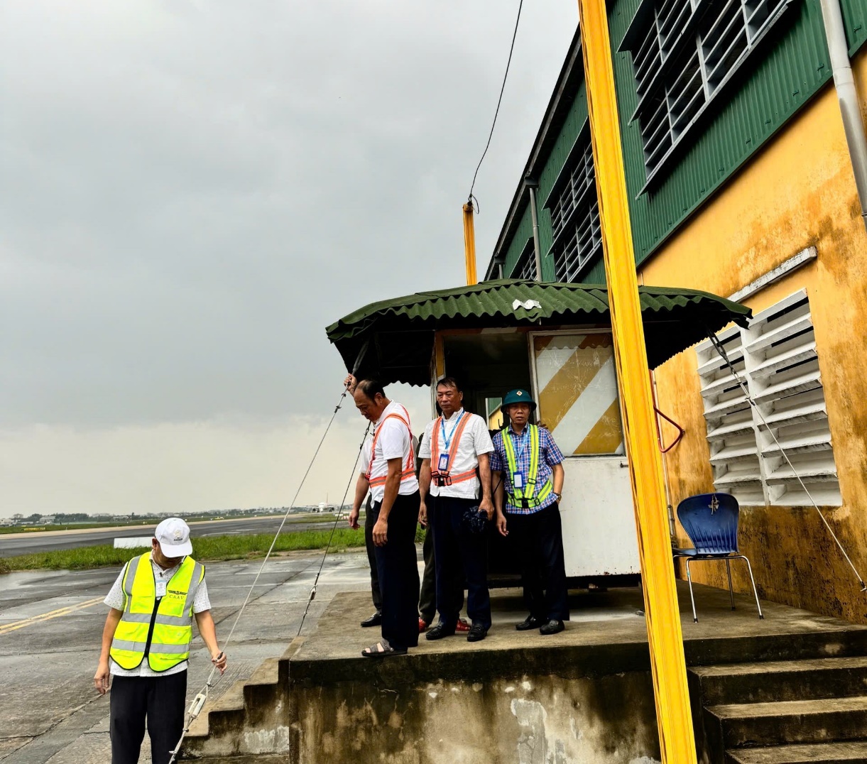 Kiểm tra công tác chằng néo chòi gác an ninh khu bay