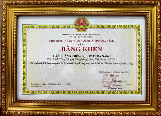 Việc đón nhận Bằng khen từ lãnh đạo thành phố không chỉ là sự ghi nhận cho những nỗ lực chuyên nghiệp và tận tâm của đội ngũ cán bộ, nhân viên, mà còn là động lực to lớn để Cảng hàng không quốc tế Đà Nẵng tiếp tục khẳng định vị thế là một đầu mối giao thông trọng điểm, luôn đồng hành và góp phần làm đẹp hình ảnh thành phố Đà Nẵng – nơi hội tụ văn hóa, tâm linh và phát triển bền vững.