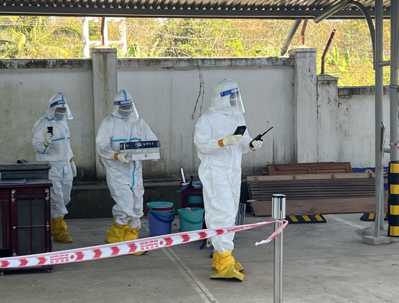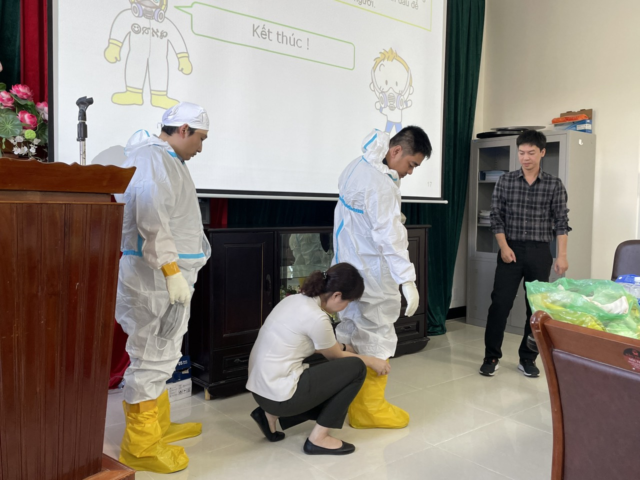 Thực hành sử dụng các thiết bị ứng phó sự cố bức xạ và các dụng cụ được sử dụng trong buổi diễn tập.