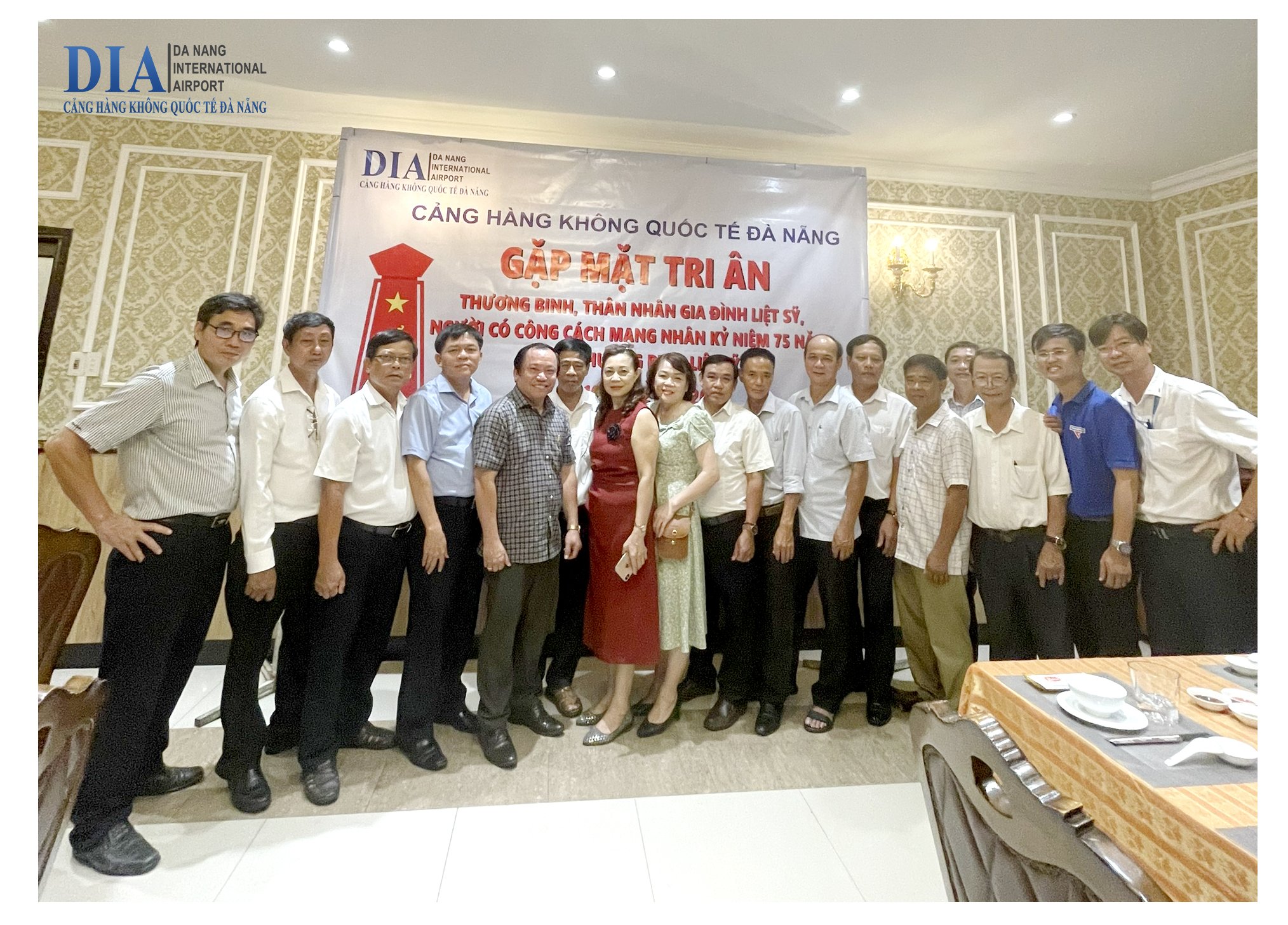 + Ngày 21/7/2022 Đại diện Đảng uỷ, Ban giám đốc, Công Đoàn, Đoàn TN Cảng hàng không quốc tế Đà Nẵng cùng 16 cán bộ, công nhân viên là thân nhân gia đình Liệt sỹ hiện đang công tác tại đơn vị, tổ chức dâng hoa và thắp hương tri ân các Anh hùng liệt sỹ tại Nghĩa trang Liệt sỹ Thành phố Đà Nẵng. Tiếp sau chương trình dâng hương, Cảng HKQT Đà Nẵng cũng tổ chức Gặp mặt tri ân và tặng quà cho 16 cán bộ, người lao động là thân nhân gia đình liệt sỹ hiện đang công tác tại đơn vị. Chương trình thể hiện sự quan tâm, động viên của Đảng ủy, Chính quyền Cảng HKQT Đà Nẵng đến các thân nhân gia đình chính sách.