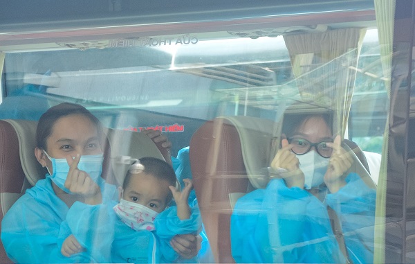 Người dân lên xe về khách sạn cách ly tập trung theo danh sách