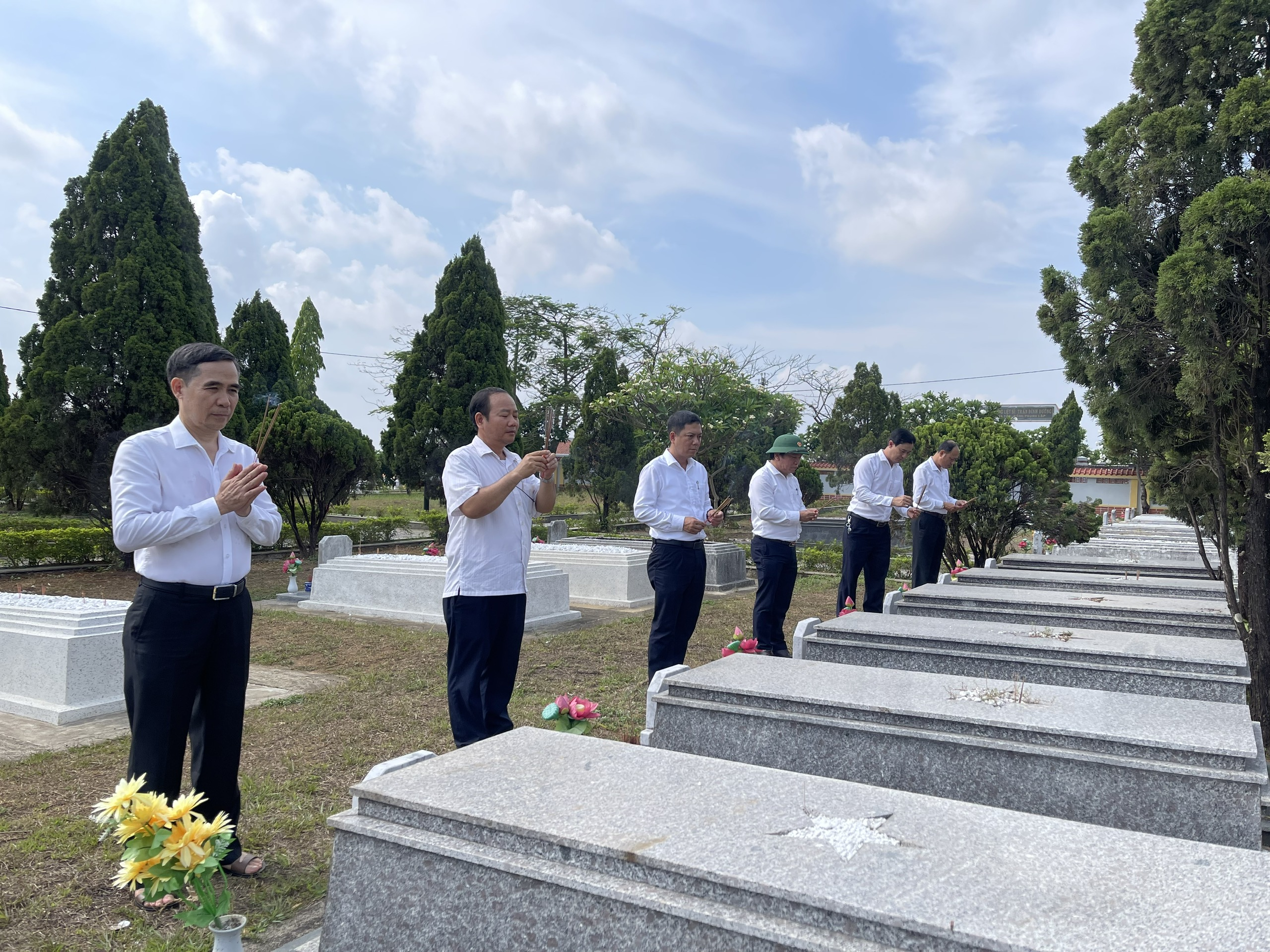 Đoàn thắp hương các mộ Anh hùng Liệt sỹ