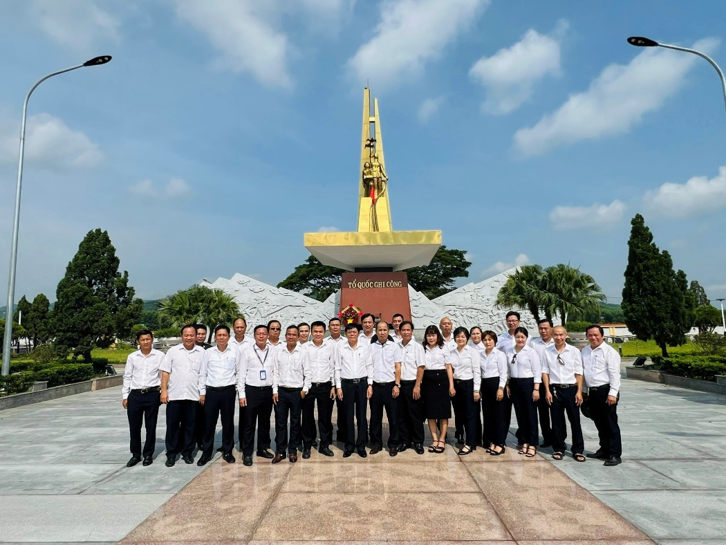 Đoàn chụp ảnh lưu niệm trước tượng đài Nghĩa trang liệt sỹ Thành phố Đà Nẵng