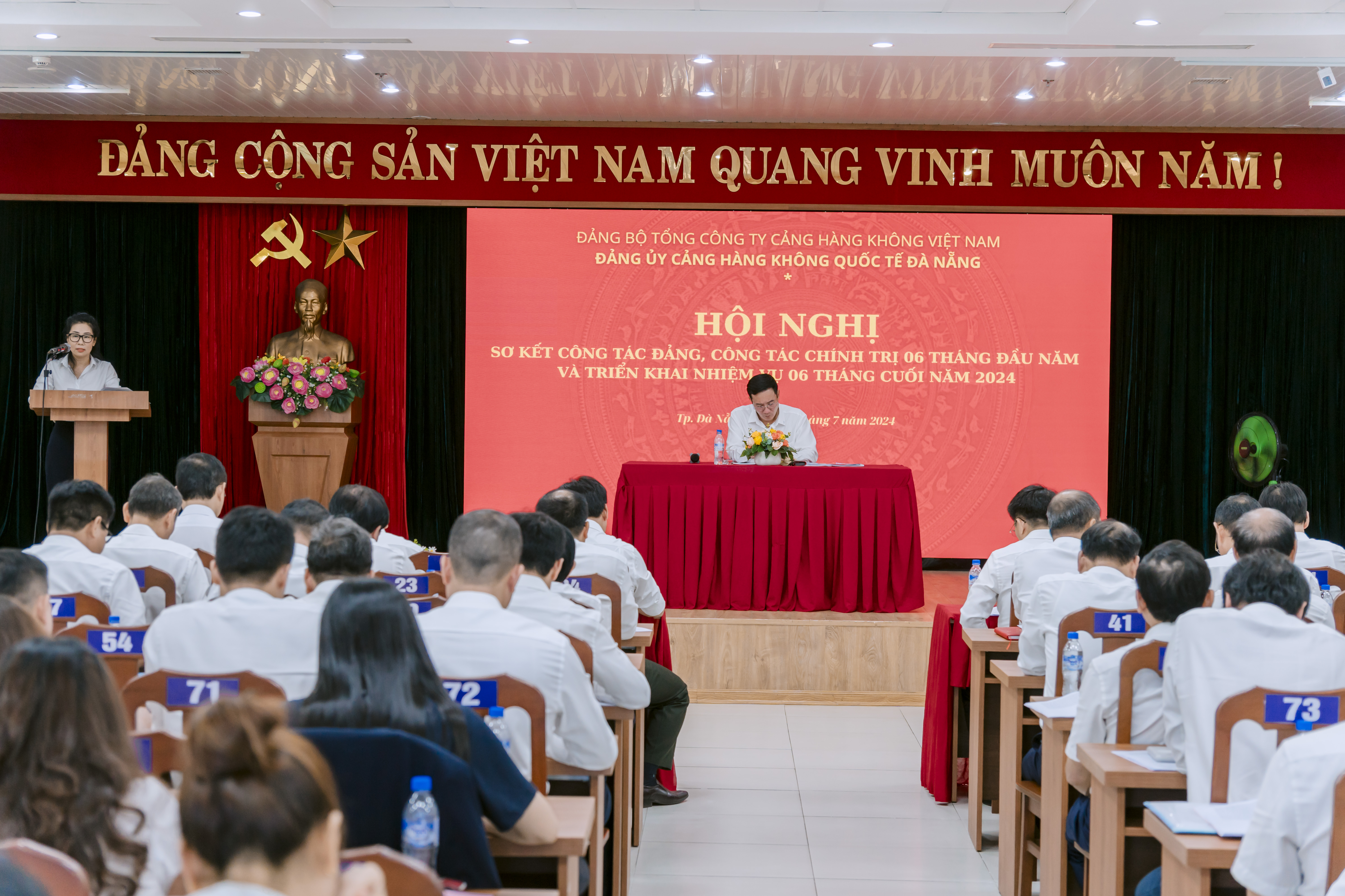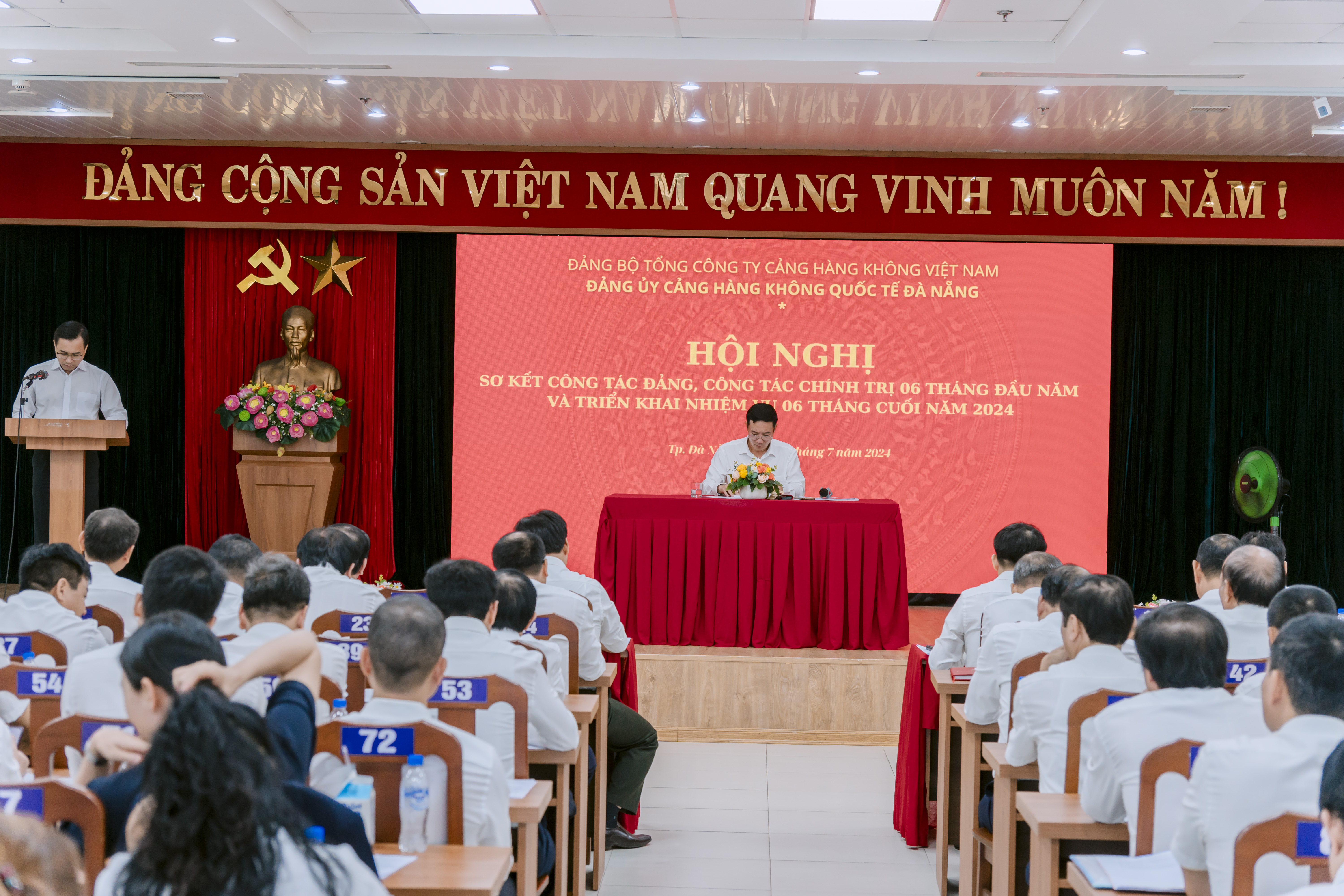 Thực hiện chương trình công tác của Đảng uỷ năm 2024, ngày 08/7/2024, Đảng uỷ Cảng hàng không Quốc tế Đà Nẵng tổ chức Hội nghị sơ kết nhằm đánh giá kết quả lãnh đạo công tác xây dựng Đảng, thực hiện nhiệm vụ chính trị 6 tháng đầu năm 2024 và triển khai nhiệm vụ trọng tâm 6 tháng cuối năm. Đồng chí Phan Kiều Hưng, Phó Bí thư phụ trách, Giám đốc Cảng HKQT Đà Nẵng tham dự và chủ trì Hội nghị; cùng dự có các đồng chí trong Ban thường vụ, Đảng uỷ, Ban giám đốc Cảng; các đồng chí là cấp uỷ viên các cấp và cán bộ từ cấp đội trở lên.