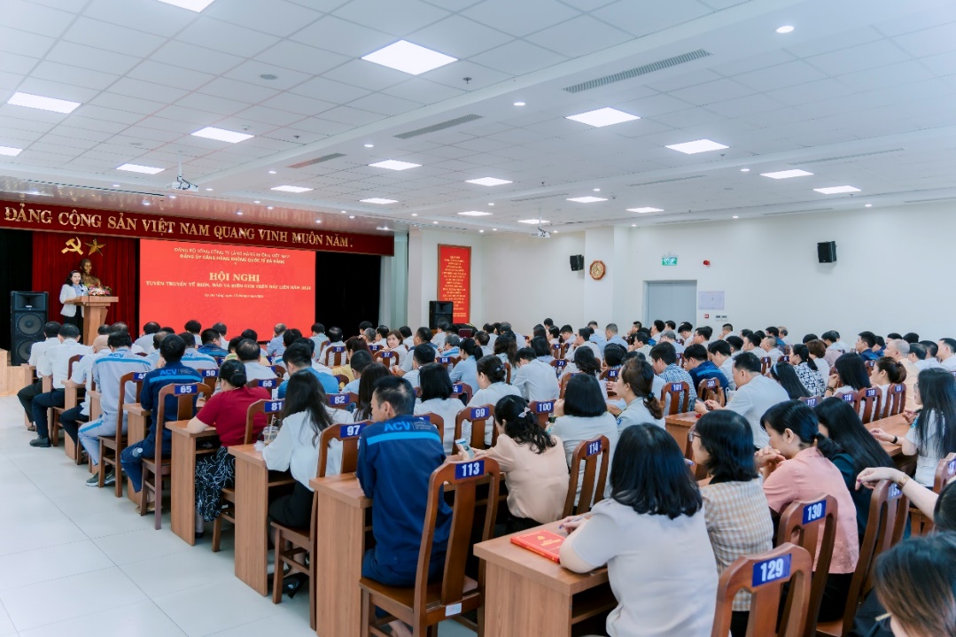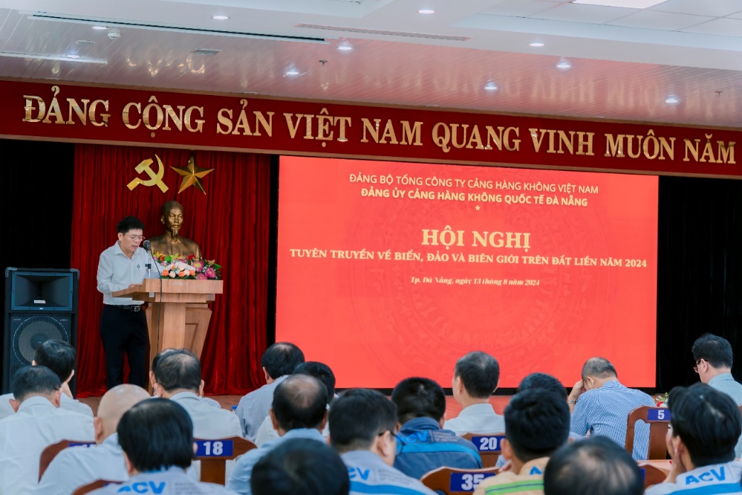Tại hội nghị, 348 cán bộ, đảng viên, cán bộ đoàn thể tại Đảng bộ Cảng HKQT Đà Nẵng đã được nghe báo cáo viên - Tiến sỹ Trần Quốc Dương – Giảng viên cao cấp - Học viện Chính trị Quốc gia Hồ Chí Minh triển khai đầy đủ các nội dung liên quan đến biển, đảo và biên giới trên đất liền của Việt Nam; những chủ trương, đường lối đối ngoại của Đảng và Nhà nước ta đối với các quốc gia có chung đường biên giới.