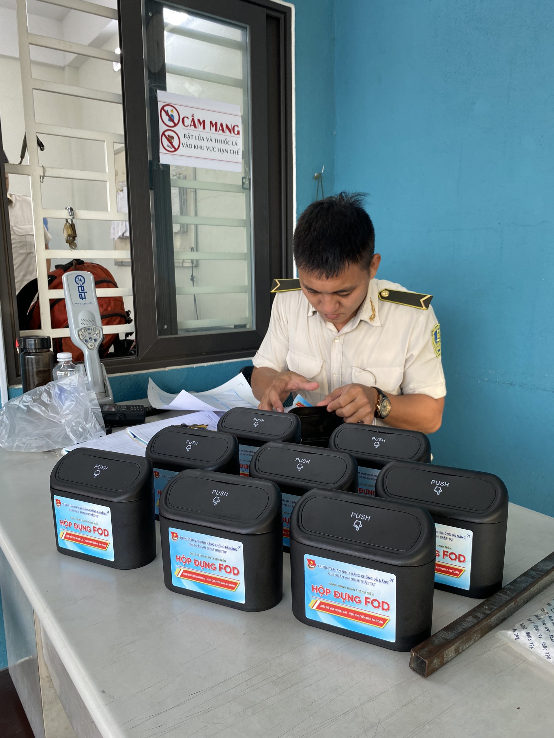 Được sự định hướng của Ban thường vụ Đoàn thanh niên Cảng HKQT Đà Nẵng, sự quan tâm tạo điều kiện, chỉ đạo sát sao của Đảng uỷ bộ phận Trung tâm An ninh hàng không và Chi bộ An ninh trật tự, Chi đoàn An ninh trật tự đã triển khai các hoạt động cụ thể nhằm kiểm soát FOD tại khu vực sân đỗ tàu bay. Sau gần một tháng thí điểm tính hiệu quả (từ ngày 25/7-23/8/2023), sáng ngày 24/8/2023, Chi đoàn An ninh trật tự đã triển khai kế hoạch lắp đặt “HỘP ĐỰNG FOD” trên tất cả xe đạp tuần tra trên khu vực sân đỗ tàu bay thuộc Đội An ninh trật tự - Trung tâm An ninh hàng không Đà Nẵng.
