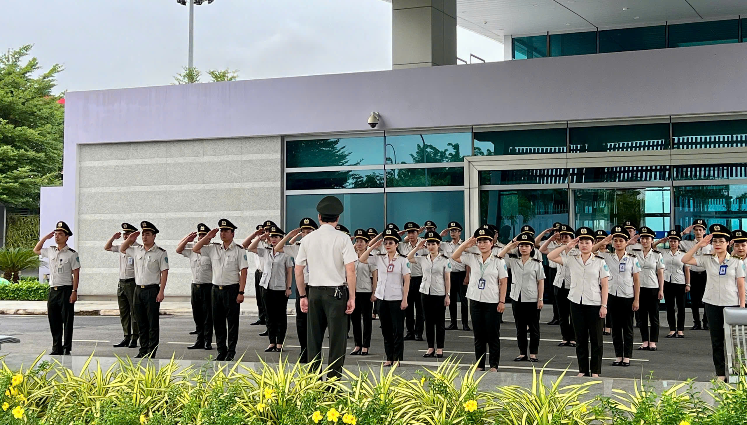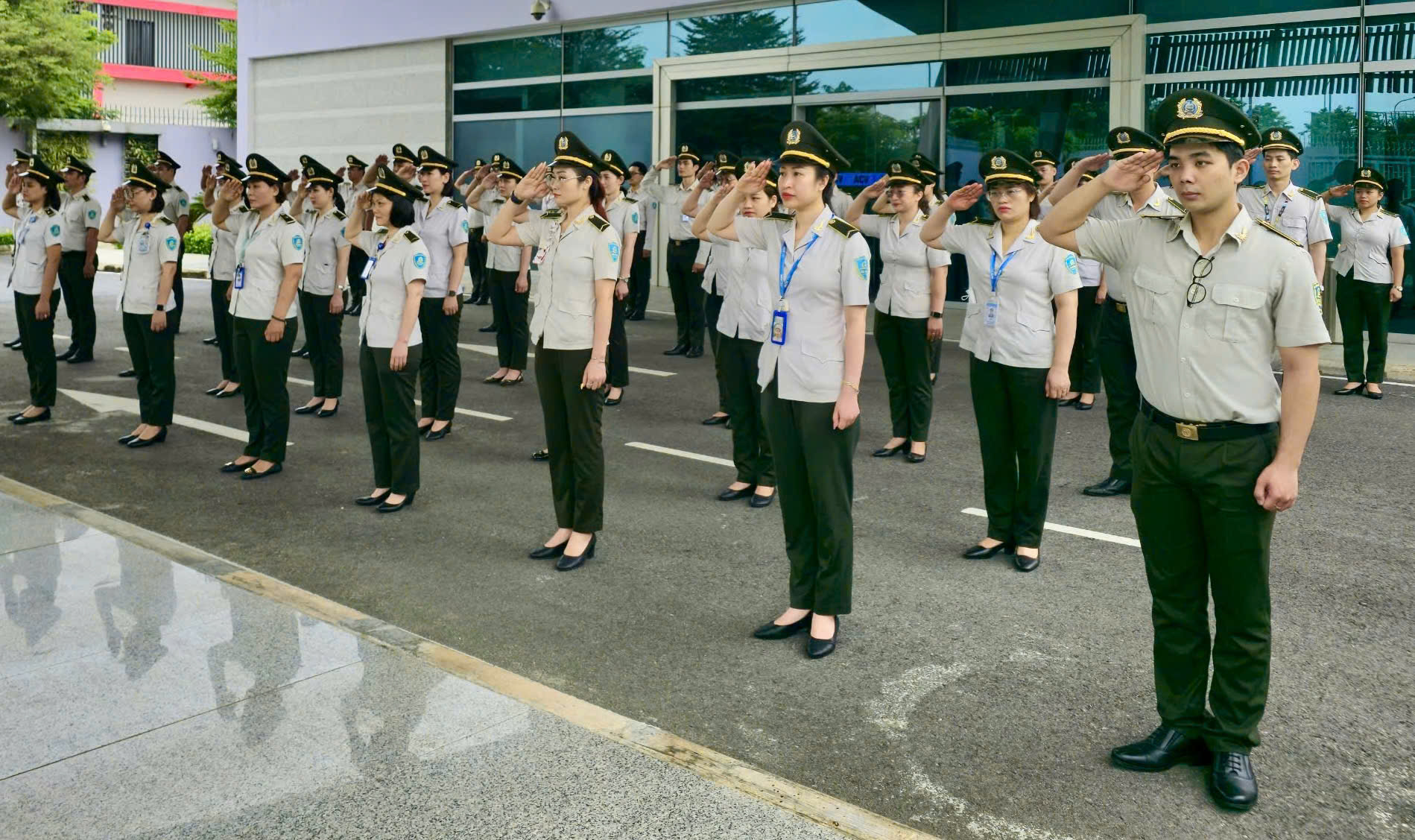 Cán bộ, nhân viên ANHK thực hiện các động tác điều lệnh đội ngũ