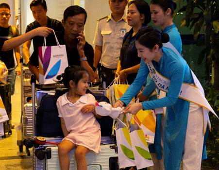 Lễ chào mừng có sự hiện diện của đại diện Cảng hàng không quốc tế Đà Nẵng, Công ty Cổ phần Đầu tư Khai thác Nhà ga quốc tế Đà Nẵng, Sở Văn hóa, Thể thao và Du lịch, Sở Ngoại vụ, và các cơ quan chức năng. Ngay khi hạ cánh, hành khách trên chuyến bay đã nhận được sự chào đón nồng nhiệt với các tiết mục nghệ thuật truyền thống đặc sắc và những món quà lưu niệm.