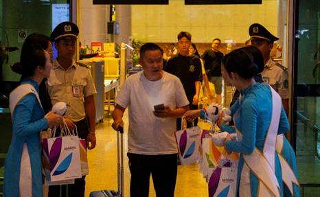 Tặng quà lưu niệm cho những vị khách đầu tiên trên chuyến bay
