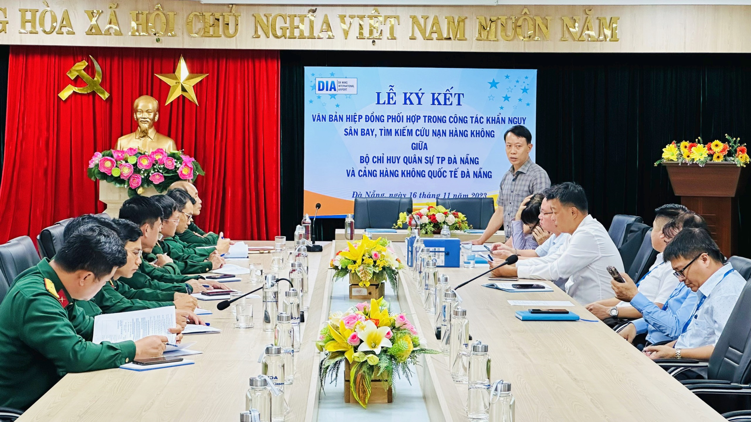 Nhằm mục đích tăng cường công tác phối hợp hiệp đồng ứng phó khẩn nguy sân bay và tìm kiếm hàng không tại khu vực trách nhiệm của Cảng HKQT Đà Nẵng. Đồng thời nâng cao năng lực ứng phó, xử lý kịp thời, hiệu quả khi có tình huống tàu bay lâm nguy, lâm nạn trên địa bàn Thành phố Đà Nẵng cũng như quy định cơ chế phối hợp và trách nhiệm cụ thể của các bên nhằm tối ưu hóa nguồn lực và phát huy tính chủ động trong việc hỗ trợ công tác khẩn nguy sân bay, tìm kiếm cứu nạn của từng đơn vị để giảm thiểu thiệt hại về người và tài sản khi sự cố, tai nạn tàu bay xảy ra. Cảng HKQT Đà Nẵng đã tiến hành ký kết Văn bản hiệp đồng phối hợp công tác Khẩn nguy sân bay và Tìm kiếm cứu nạn với Bộ Chỉ huy Quân sự Thành phố Đà Nẵng vào ngày 16/11/2023. Tham dự buổi Lễ ký kết văn bản hiệp đồng về phía Cảng HKQT Đà Nẵng có Ông Hoàng Hữu Cương – Phó Giám đốc Cảng HKQT Đà Nẵng và đại diện Lãnh đạo các đơn vị trực thuộc. Về phía Bộ Chỉ huy Quân sự Thành phố Đà Nẵng có sự tham dự của đồng chí Đại tá Trần Quang Chánh – Phó chỉ huy trưởng kiêm Tham mưu trưởng Bộ Chỉ huy Quân sự Thành phố Đà Nẵng và đại diện Lãnh đạo các đơn vị trực thuộc.