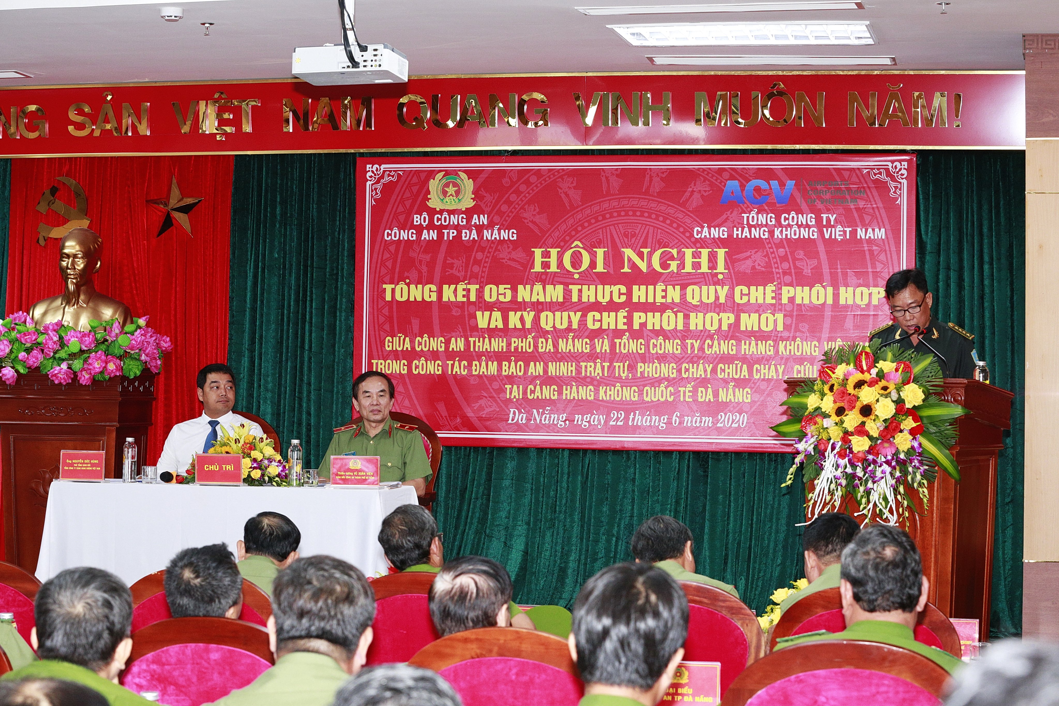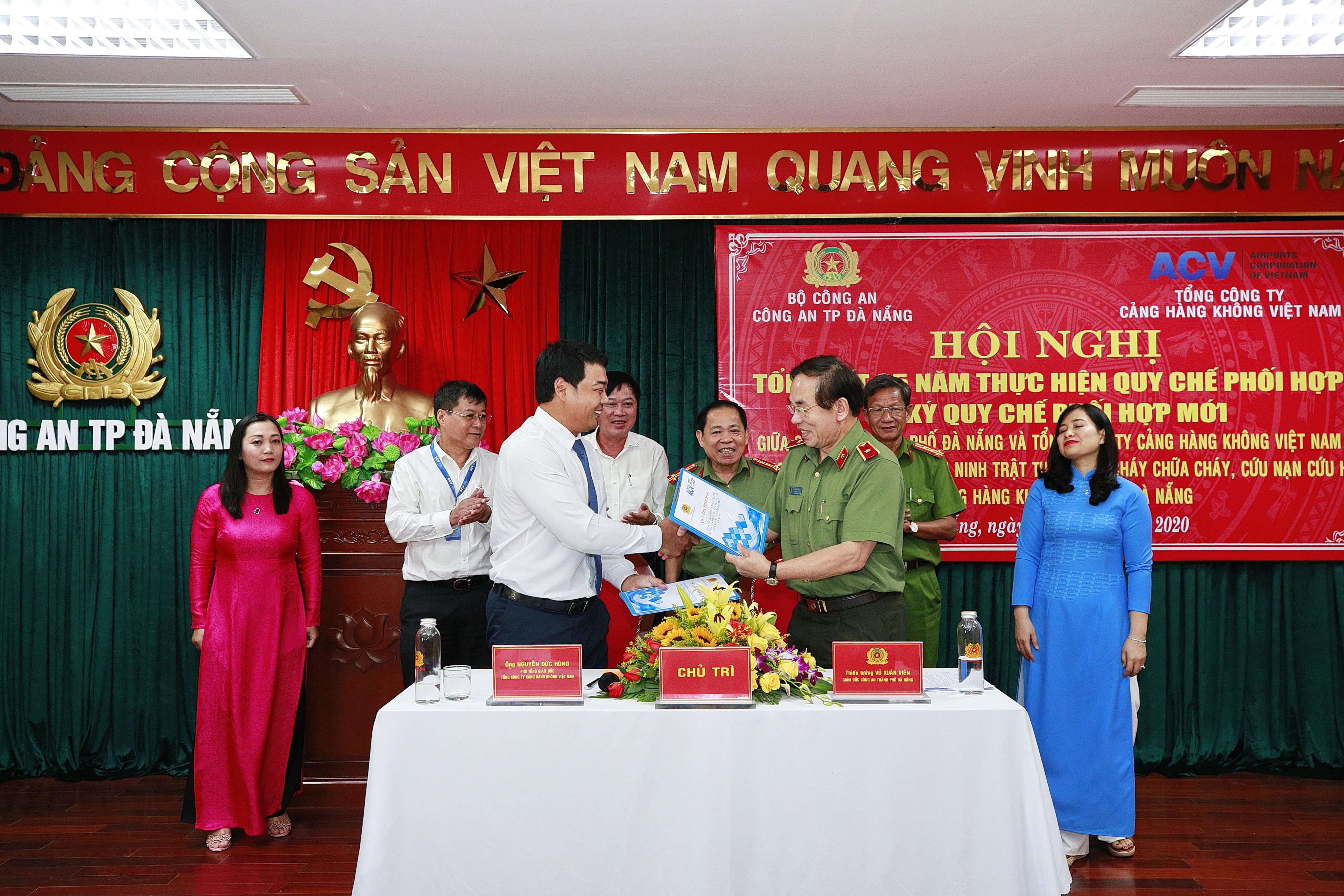 Ngày 22 tháng 6 năm 2020, Tổng công ty Cảng hàng không Việt Nam (ACV) đã phối hợp với Công an thành phố Đà Nẵng (CATP) tổ chức Hội nghị Tổng kết 05 năm triển khai thực hiện Quy chế Phối hợp (QCPH) số 2944/QCPH/CA-TCTCHK-PCCC về “Công tác đảm bảo an ninh quốc gia, trật tự an toàn xã hội; an ninh hàng không; phòng cháy, chữa cháy cứu hộ cứu nạn tại Cảng hàng không quốc tế Đà Nẵng” và tiến hành ký QCPH mới.