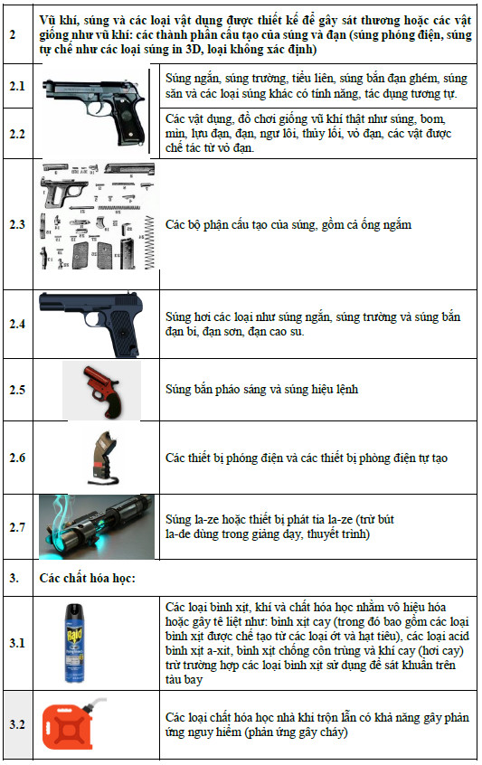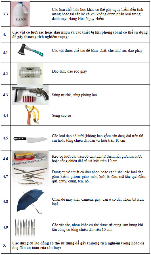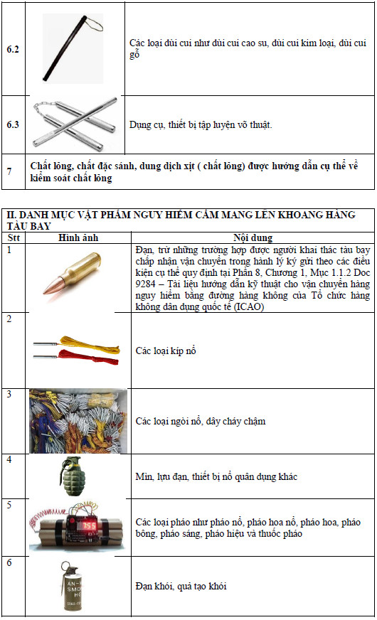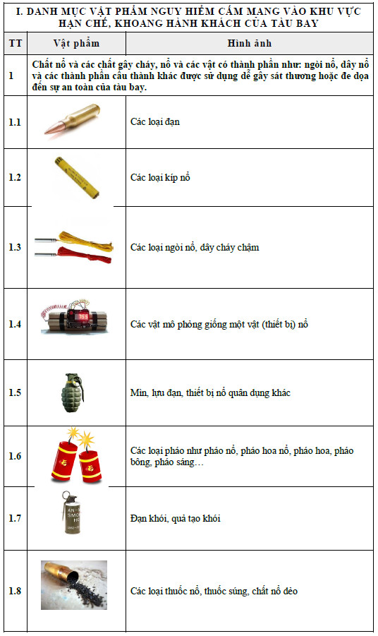 III. DANH MỤC VẬT PHẨM NGUY HIỂM HẠN CHẾ MANG THEO NGƯỜI, HÀNH LÝ LÊN TÀU BAY. Vui lòng xem chi tiết tại đây