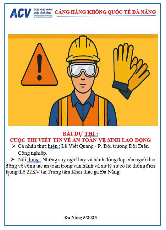 Dưới đây là bài viết đạt giải nhất của ông Lê Viết Quang - Phó đội trưởng đội Điện công nghiệp thuộc Trung tâm Khai thác ga Đà Nẵng với tác phẩm: “Những suy nghĩ hay và hành động đẹp của người lao động về công tác an toàn trong vận hành và xử lý sự cố hệ thống điện trung thế 22KV tại Trung tâm Khai thác ga Đà Nẵng”