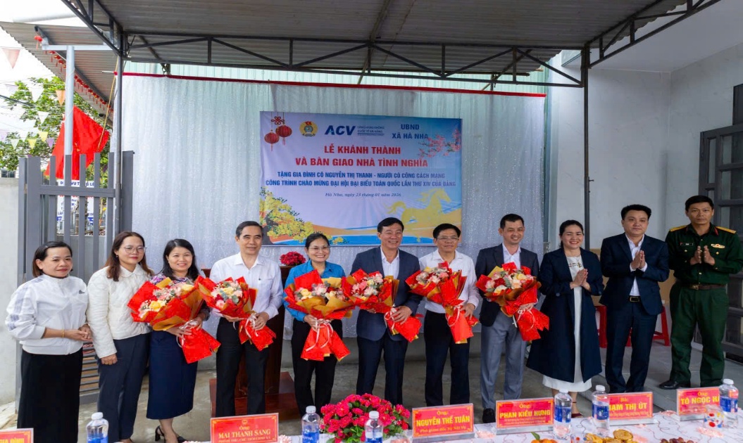 Hòa chung không khí phấn khởi chào mừng thành công Đại hội đại biểu toàn quốc lần thứ XIV của Đảng và chào đón Xuân Bính Ngọ 2026, ngày 23/1/2026, Cảng hàng không quốc tế Đà Nẵng đã phối hợp cùng chính quyền địa phương tổ chức Lễ khánh thành và bàn giao Nhà tình nghĩa, đồng thời trao quà Tết cho các bác cựu Thanh niên xung phong có hoàn cảnh khó khăn tại xã Hà Nha.