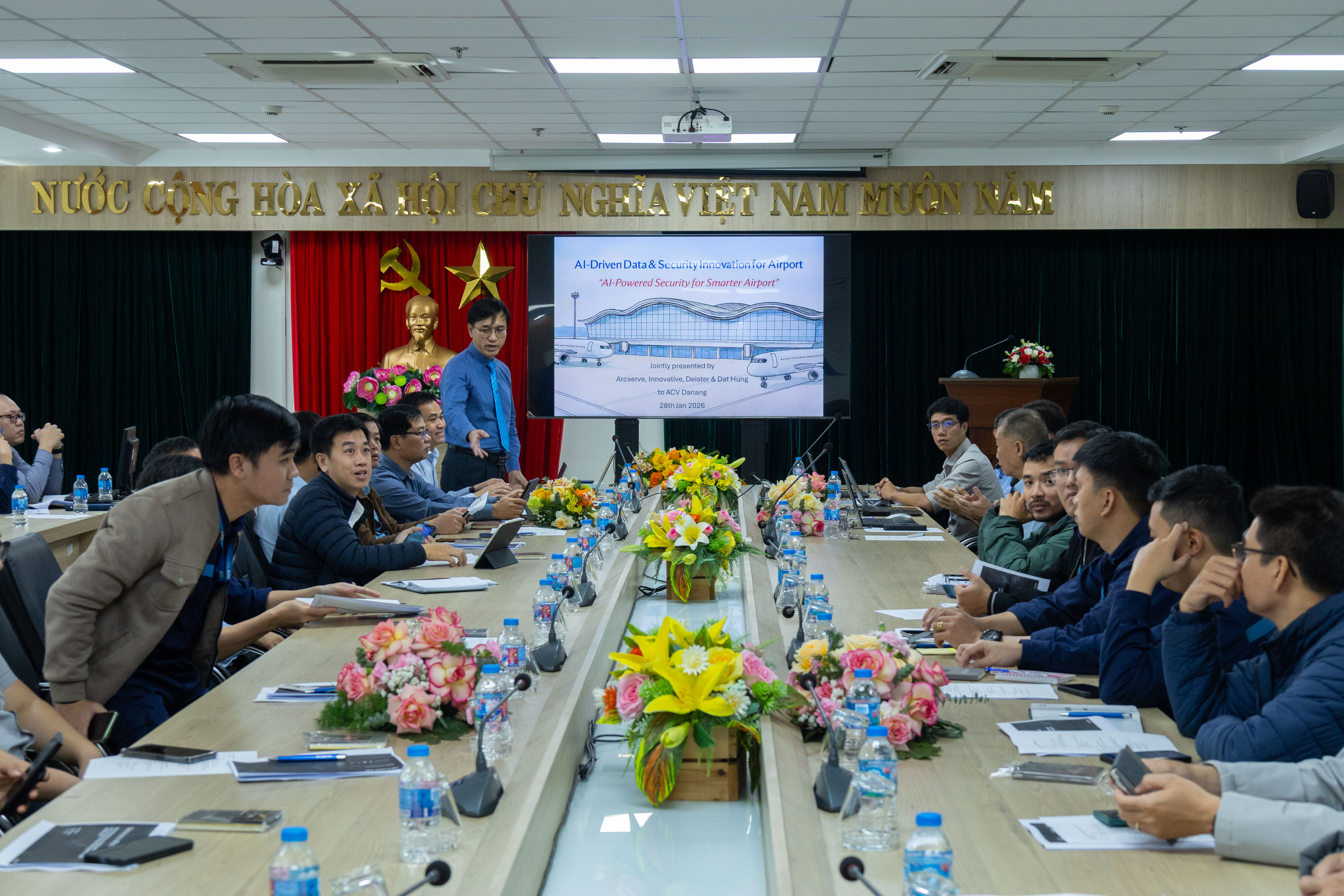 Trong bối cảnh chuyển đổi số và yêu cầu ngày càng cao về bảo đảm an ninh, an toàn dữ liệu trong hoạt động hàng không, sáng ngày 28/01/2026, Cảng hàng không quốc tế Đà Nẵng đã tổ chức hội thảo chuyên đề “AI-Driven Data & Security Innovation for Airport”. Hội thảo do Phòng Kỹ thuật Công nghệ Môi trường chủ trì tổ chức, phối hợp cùng Công ty TNHH TMDV xuất nhập khẩu Đạt Hưng và các đối tác công nghệ.