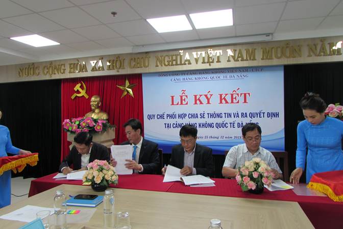 Triển khai thực hiện Quyết định số 2863/QĐ-CHK ngày 03/12/2019 của Cục trưởng Cục Hàng không Việt Nam về việc ban hành Khung Quy chế phối hợp chia sẻ thông tin và ra quyết định tại Cảng hàng không, sân bay, Cảng hàng không quốc tế Đà Nẵng đã chủ động xây dựng dự thảo, lấy ý kiến các cơ quan, đơn vị và tổ chức ký kết Quy chế phối hợp chia sẻ thông tin và ra quyết định khai thác, là cơ sở cho hoạt động của Trung tâm Điều phối khai thác AOCC, bộ não chỉ huy hiệp đồng công tác bảo đảm an ninh an toàn, phối hợp khai thác Cảng hàng không sân bay an toàn, điều hòa, hiệu quả, nâng cao chất lượng dịch vụ tại Cảng hàng không quốc tế Đà Nẵng sẽ chính thức đi vào hoạt động từ 01/01/2020.
