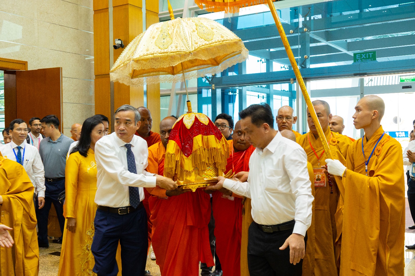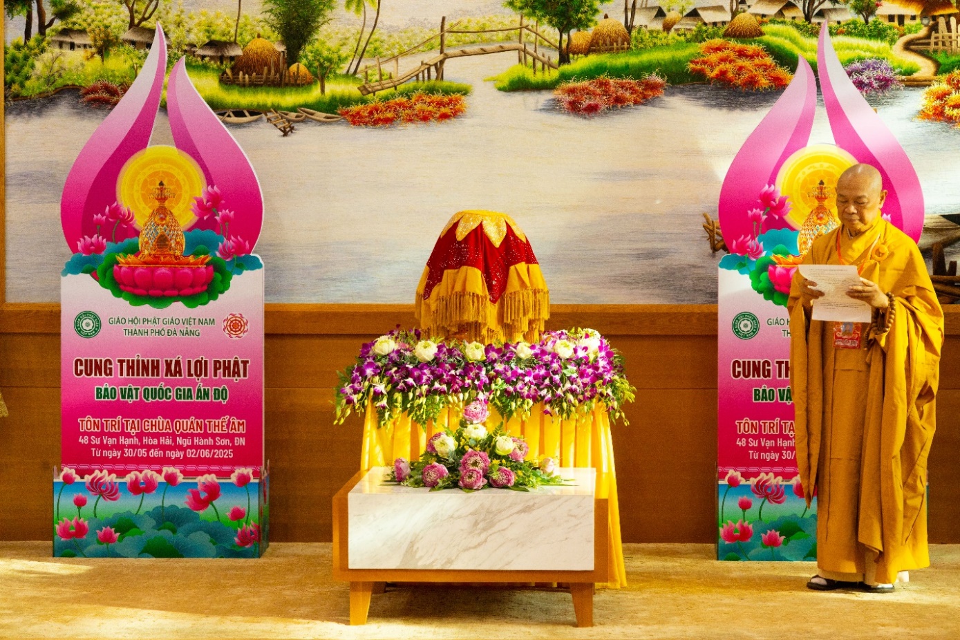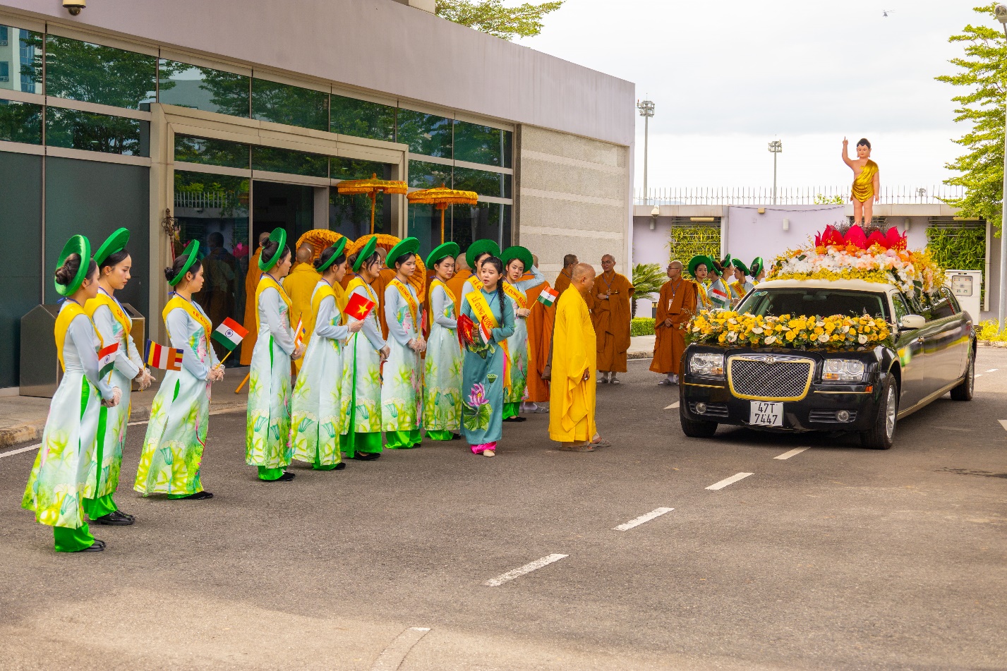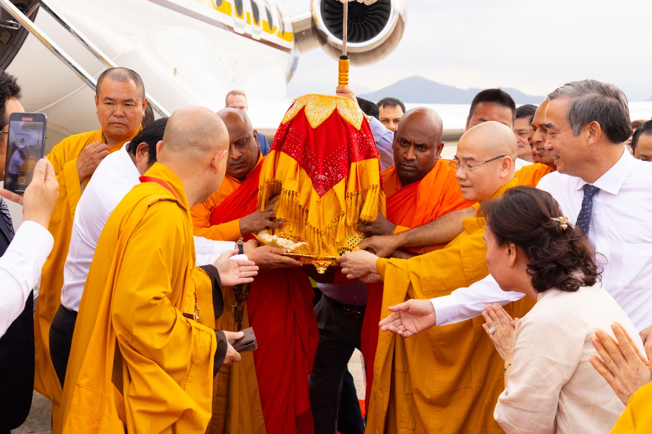 Theo kế hoạch, vào lúc 16h20 chiều ngày 30/5/2025, chuyến bay VNA 579 với chuyên cơ mang số hiệu GLF6 chở Xá Lợi Đức Phật đã đáp xuống thành phố Đà Nẵng. Tại khu vực Nhà khách VIP, Cảng hàng không quốc tế Đà Nẵng đã tổ chức hoạt động trang nghiêm để chào đón Xá Lợi Phật. Đại diện Giáo hội Phật giáo Việt Nam, lãnh đạo UBND TP Đà Nẵng cùng nhiều đơn vị, chức sắc, Phật tử đã trực tiếp tham gia nghi lễ cung rước.