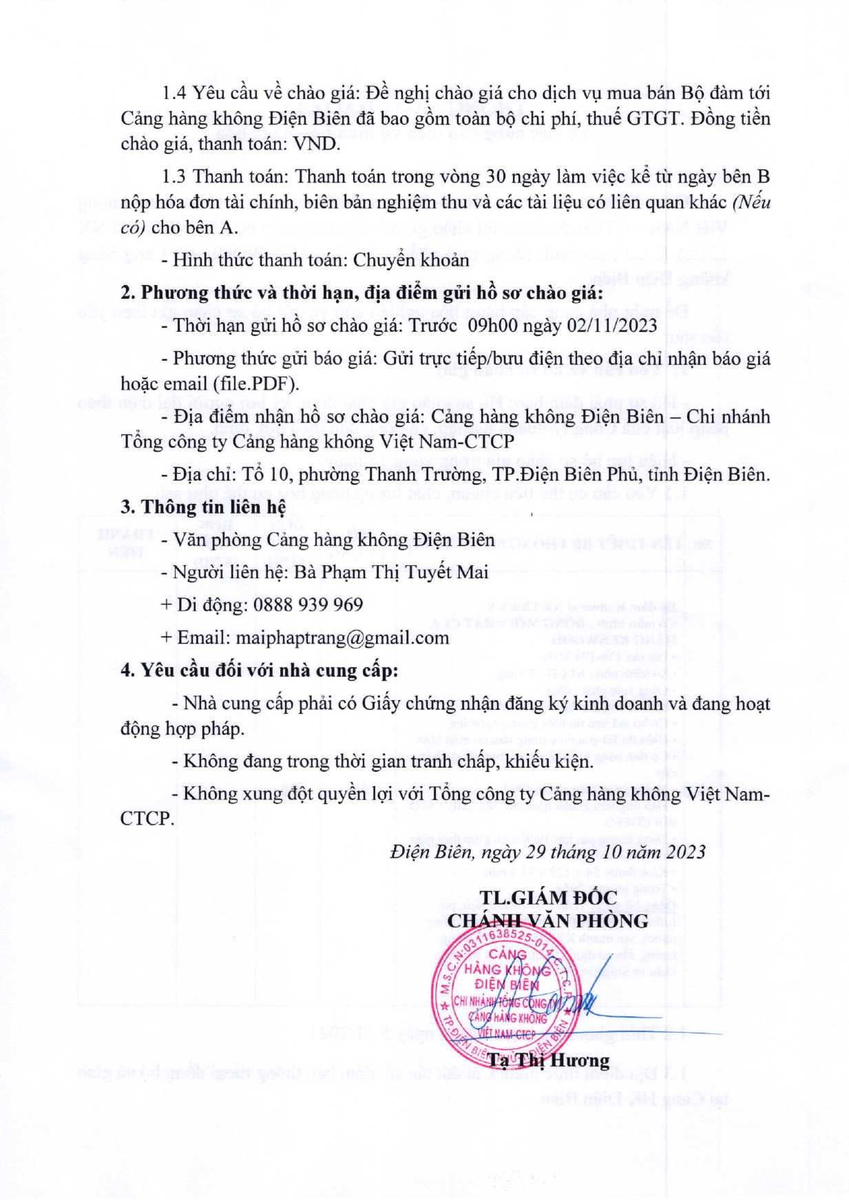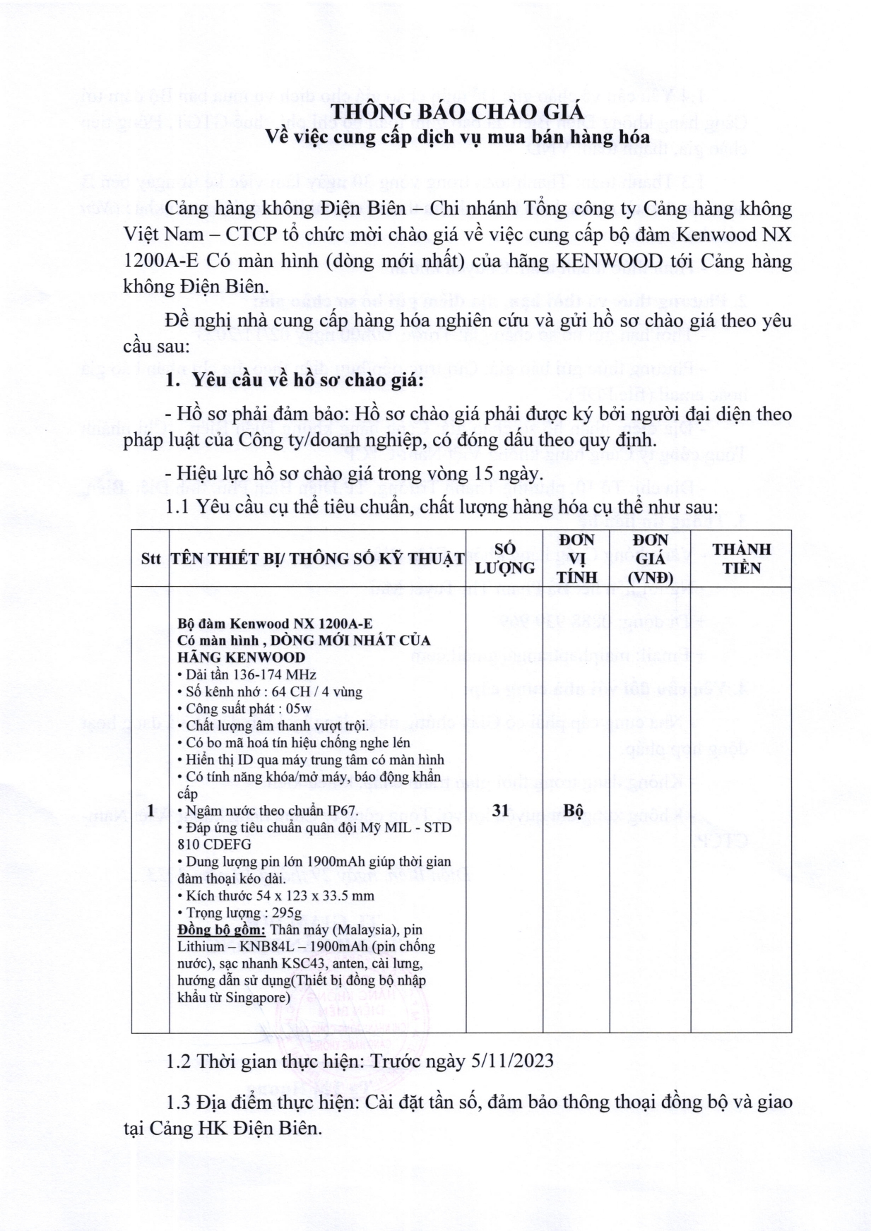 Thông báo chào giá về việc cung cấp dịch vụ mua bán hàng hóa