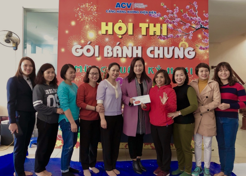 Sáng ngày 26/1, Công đoàn Cảng hàng không Điện Biên tổ chức Hội thi gói bánh chưng mừng Xuân Kỷ Hợi 2019 với sự tham gia của toàn thể cán bộ công nhân viên Cảng hàng không Điện Biên và các đơn vị hoạt động phối hợp tại Cảng: Đại diện cảng vụ hàng không tại Điện Biên, Đài kiểm soát không lưu Điện Biên, Đại diện Công ty VASCO chi nhánh tại Điện Biên, Đại diện công ty VAECO, Kho xăng dầu không quân tại Điện Biên, Đài DVOR/DME  Điện Biên. Đây là hoạt động thường niên tạo không khí vui tươi phấn khởi đón năm mới đối với người lao động trong khu vực Cảng hàng không Điện Biên.  Tăng cường sự đoàn kết gắn bó giữa CBCNV trong đơn vị và các đơn vị phối hợp hoạt động tại Cảng hàng không Điện Biên góp phần hoàn thành tốt nhiệm vụ được giao đảm bảo tốt cho hoạt động bay tại Cảng hàng không Điện Biên.