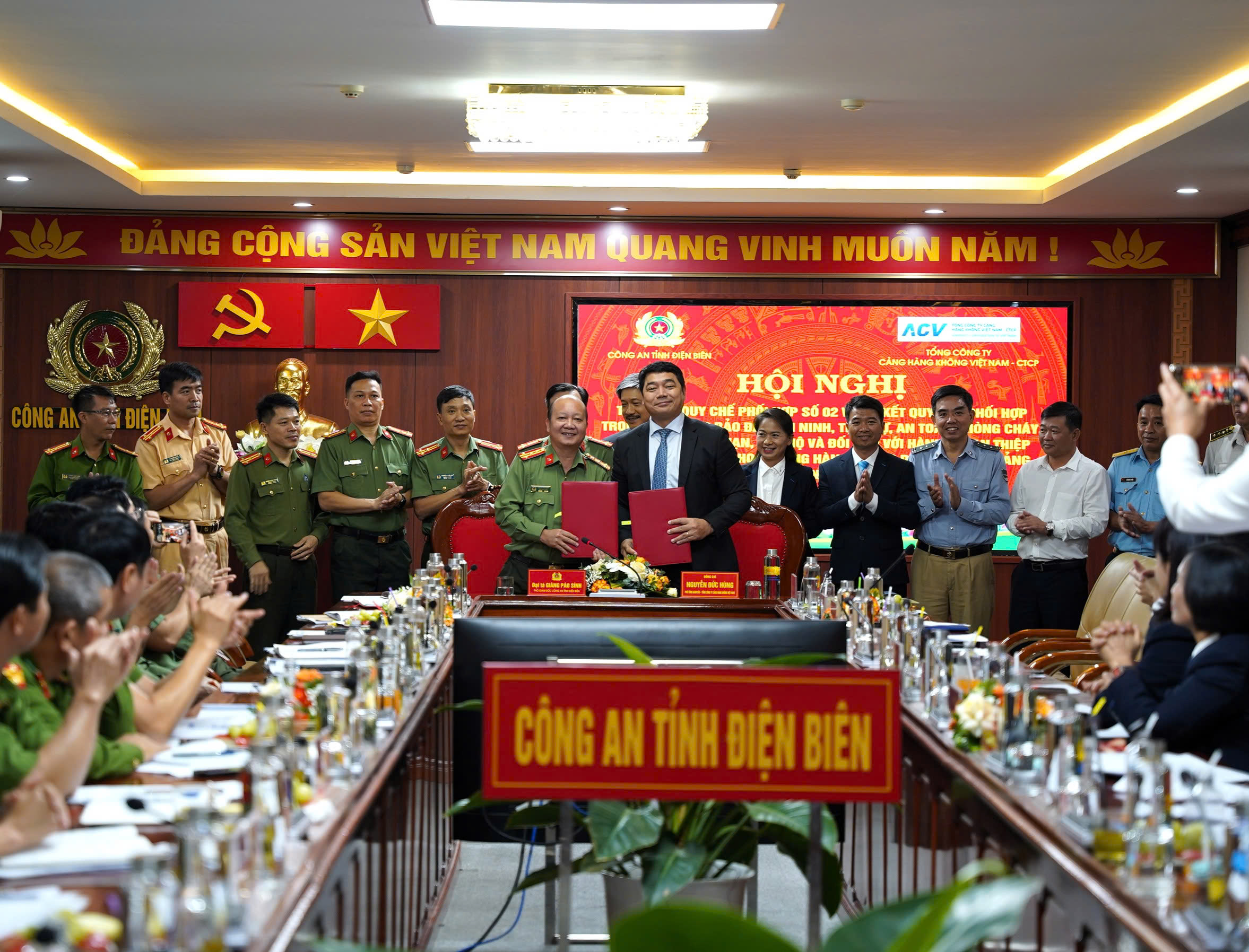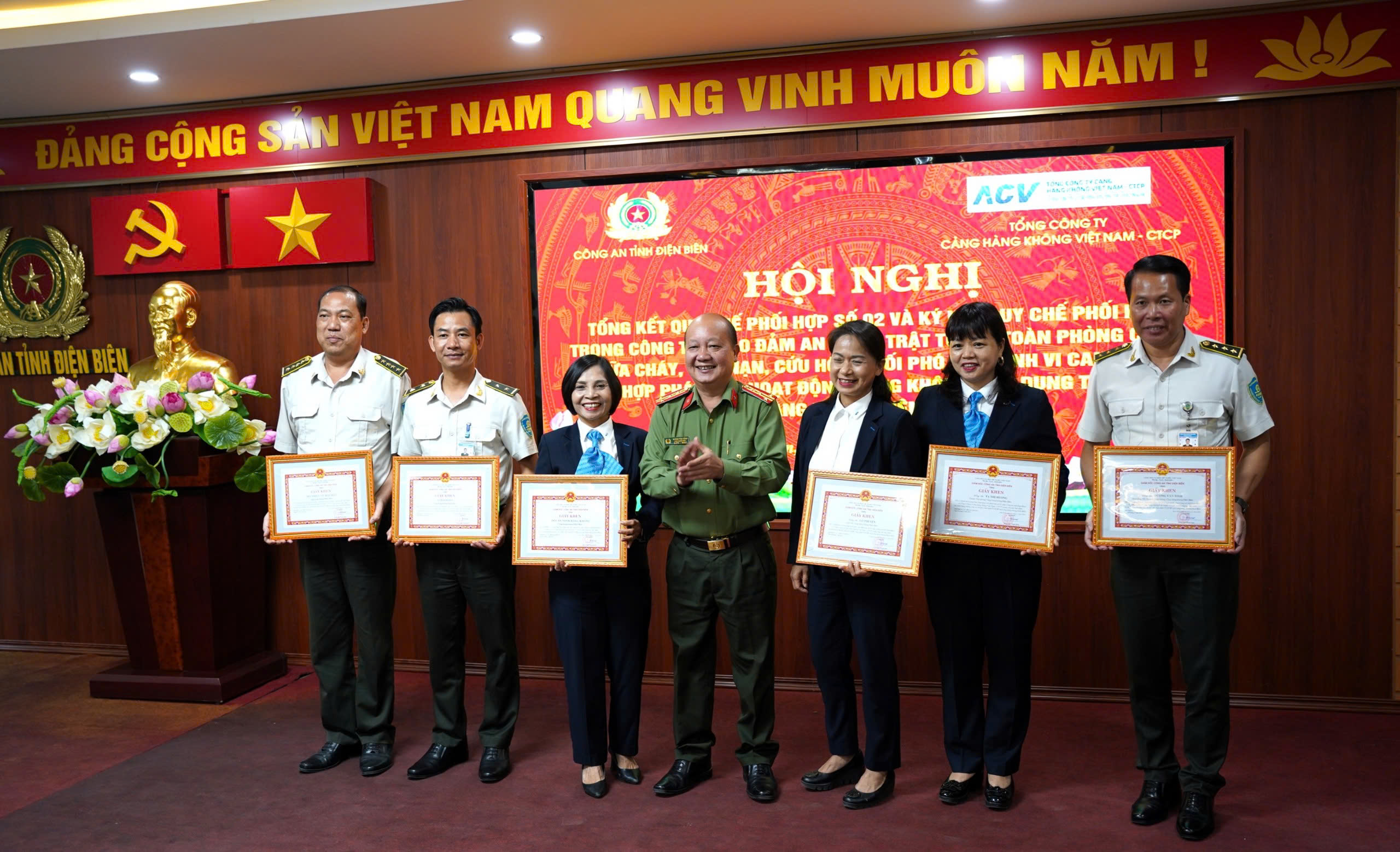 Phát huy hơn nữa những kết quả đạt được, hai đơn vị đã thống nhất ký kết quy chế phối hợp trong công tác bảo đảm an ninh, trật tự, an toàn phòng cháy, chữa cháy, cứu nạn, cứu hộ và đối phó hành vi can thiệp bất hợp pháp vào hoạt động hàng không dân dụng tại Cảng hàng không Điện Biên. Trong dịp này, Tổng công ty Cảng hàng không Việt Nam, Công an tỉnh Điện Biên và Cảng HK Điện Biên đã trao tặng giấy khen cho 06 tập thể, 09 cá nhân có thành tích xuất sắc trong triển khai thực hiện Quy chế phối hợp.