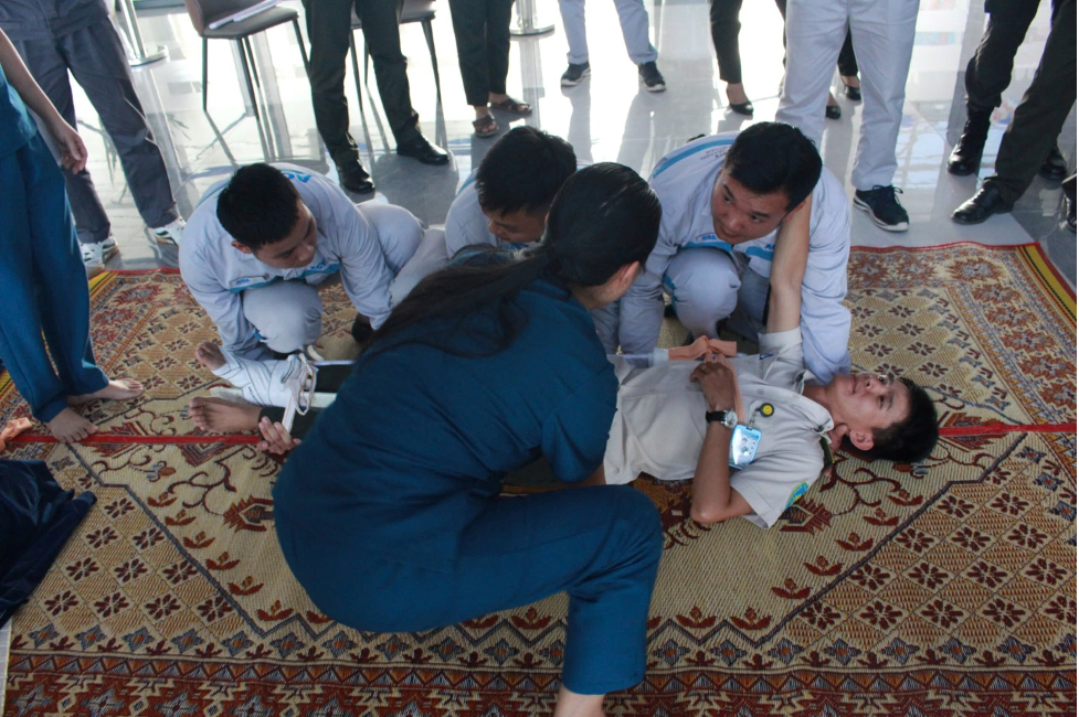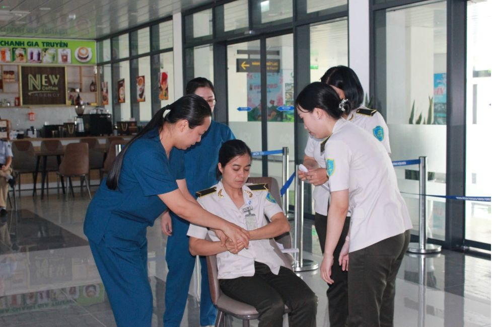 Nhân viên trong Cảng thực hành theo sự hướng dẫn của nhân viên y tế
