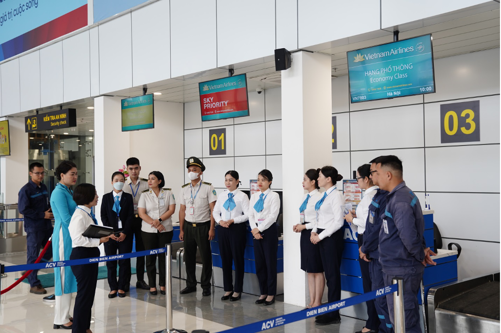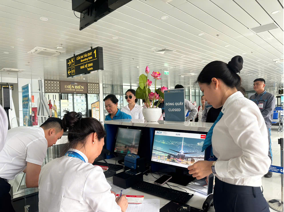 Thực hiện công văn số 168/KTC ngày 20/8/2024 của Ban Khai thác cảng – Tổng Công ty Cảng hàng không Việt Nam – CTCP (ACV) về việc Tổ chức diễn tập tình huống hệ thống làm thủ tục ngưng hoạt động Quý IV năm 2024, ngày 19/9/2024 và ngày 23/9/2024 Cảng hàng không Điện Biên đã triển khai kế hoạch kịch bản tình huống hệ thống làm thủ tục ngưng hoạt động tạm thời trên một chuyến bay giả định.