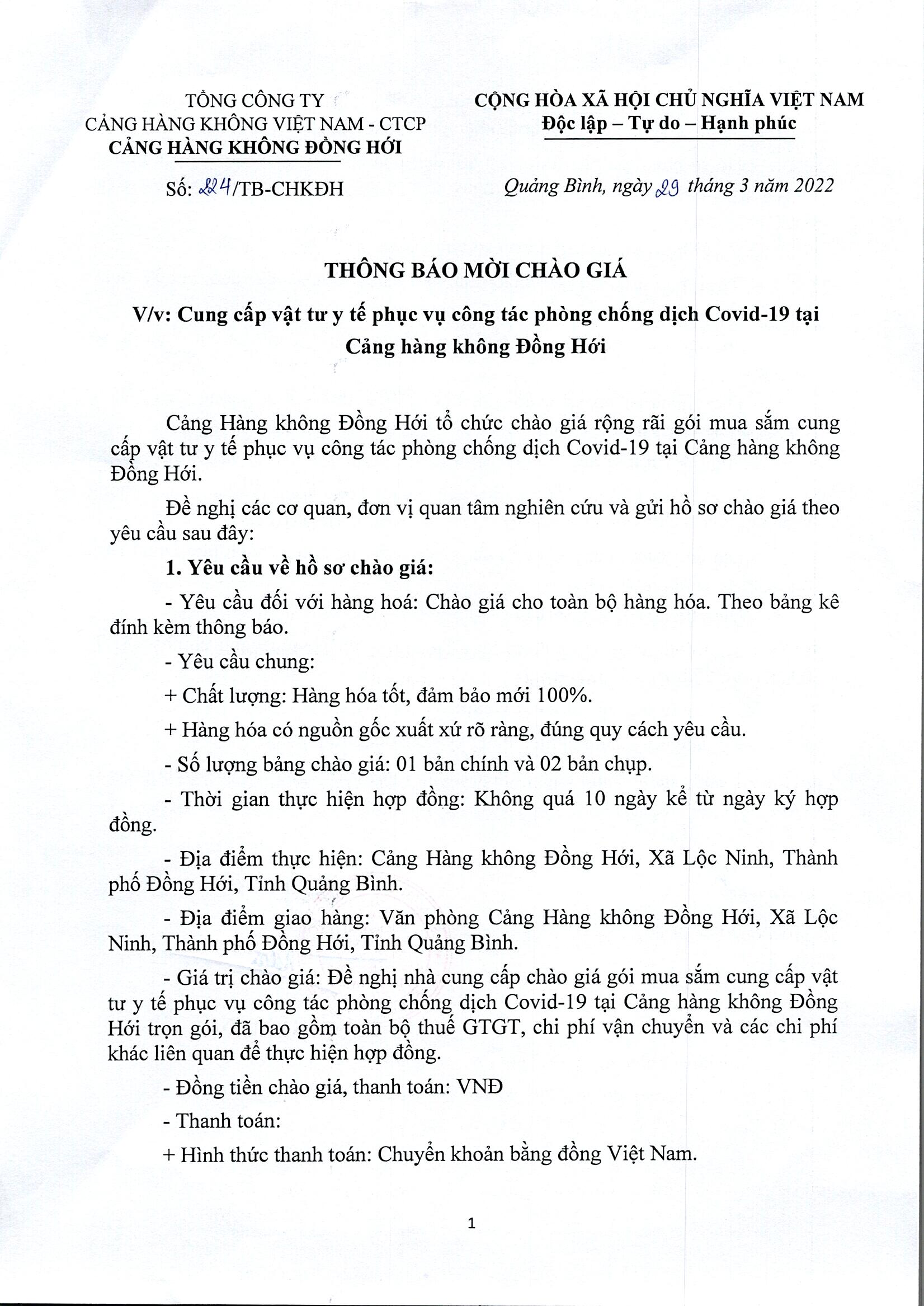Tải phụ lục chào giá