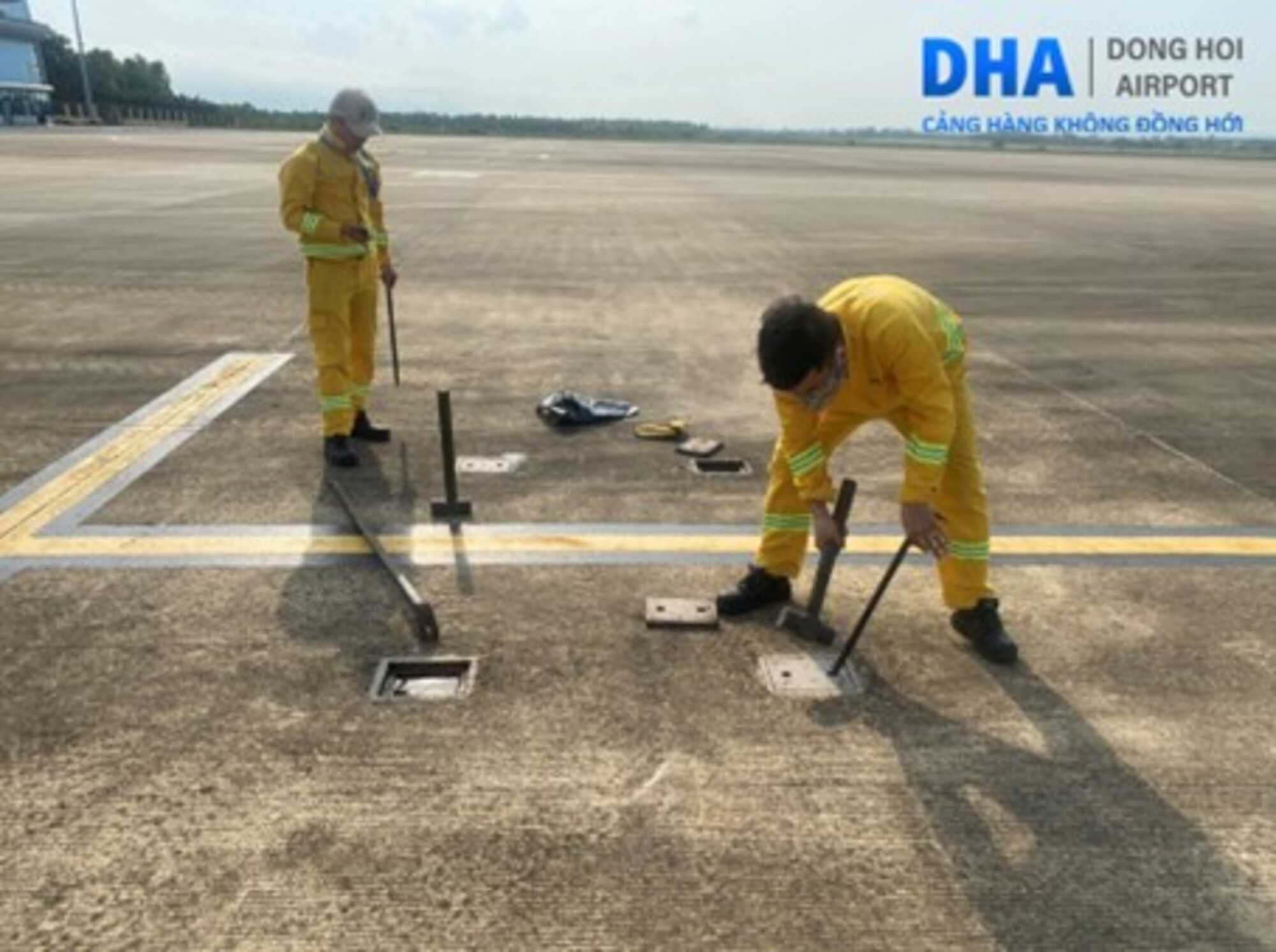 Cảng hàng không Đồng Hới tổ chức kiểm tra bảo dưỡng hố neo đậu tàu bay