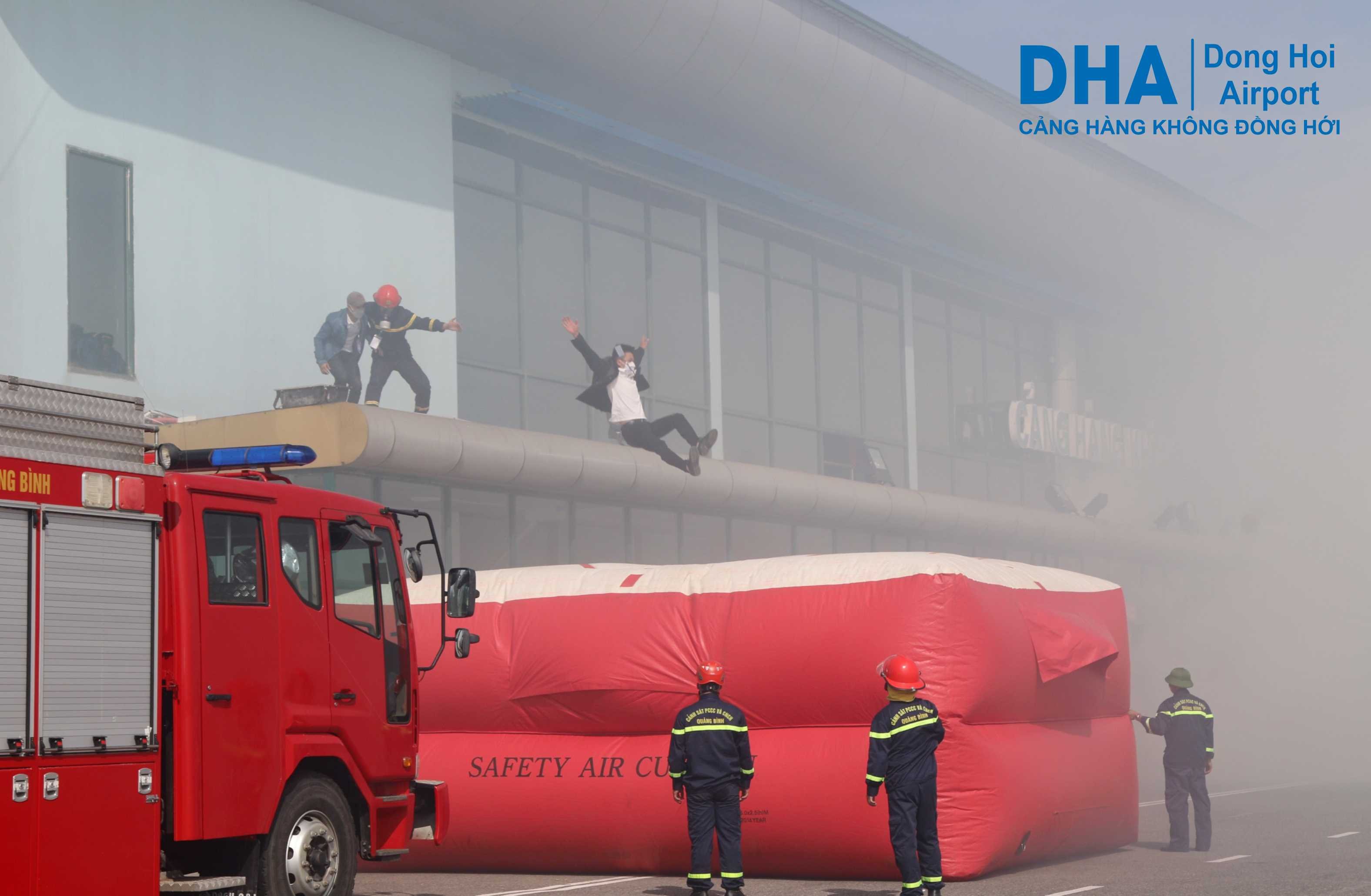 Kịch bản diễn tập gồm 3 giai đoạn: Giai đoạn đám cháy bùng phát tại nhà ga hành khách, lực lượng chữa cháy tại chỗ của Cảng Hàng không Đồng Hới trực tiếp chữa cháy. Giai đoạn đám cháy lan rộng ra các khu vực xung quanh, lực lượng Cảnh sát phòng cháy, chữa cháy - Công an tỉnh sau khi nhận tin báo đã trực tiếp có mặt và tham gia chữa cháy; giai đoạn đám cháy bùng phát nhanh, phức tạp, tất cả các lực lượng hiệp đồng tác chiến để dập tắt đám cháy.