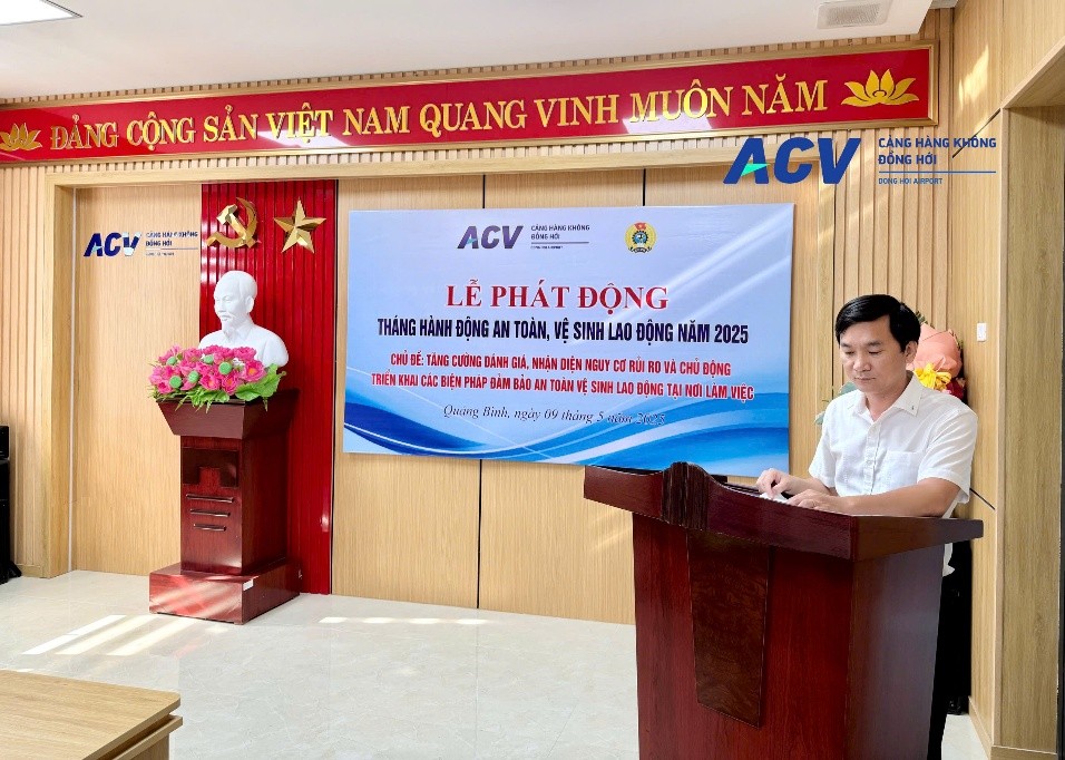 Sáng ngày 09/5/2025, Cảng hàng không Đồng Hới đã tổ chức Lễ phát động Tháng An toàn vệ sinh lao động năm 2025 với sự tham dự đầy đủ của toàn thể cán bộ, người lao động trong đơn vị.